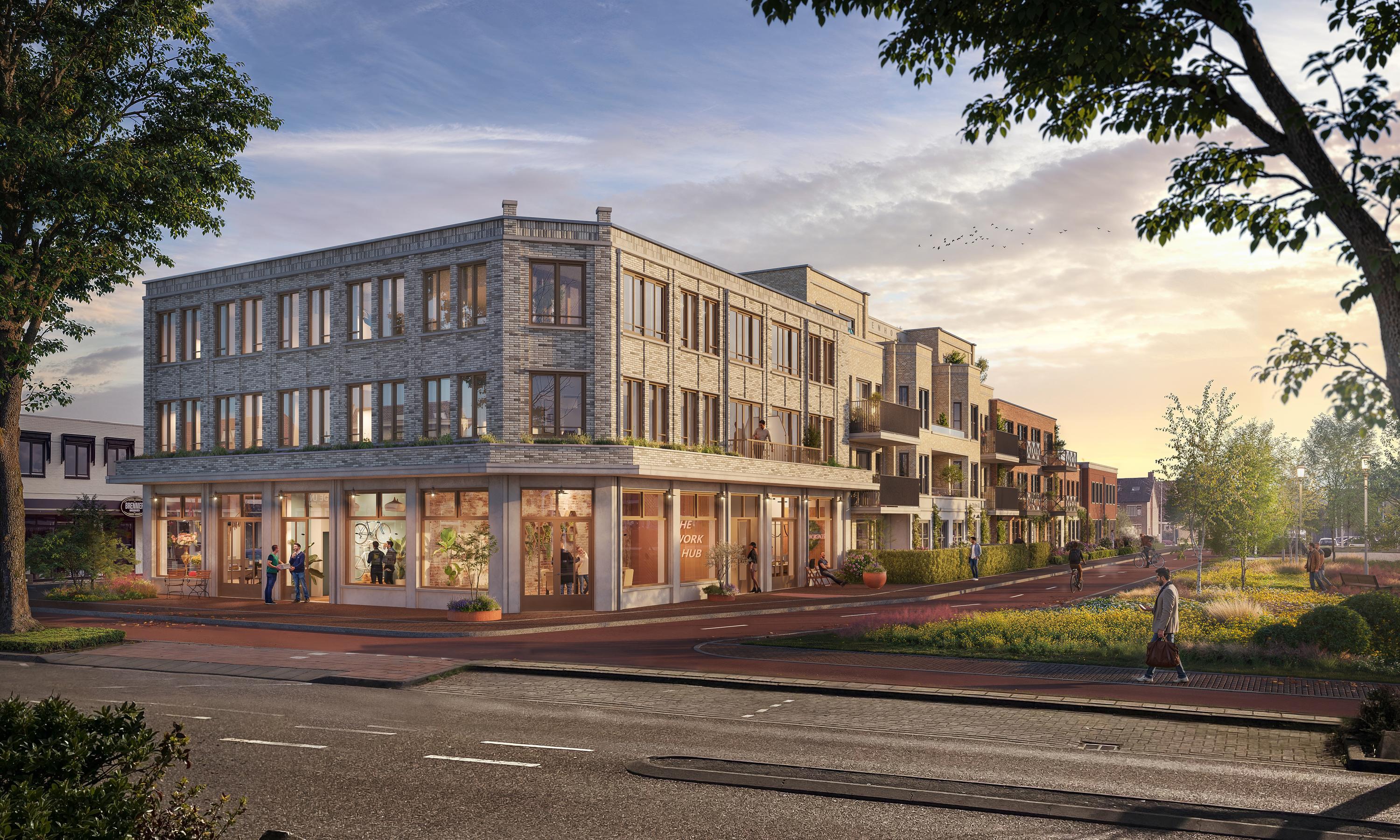 Geïnspireerd door de vooroorlogse stadshoeken en de kenmerkende afgeschuinde hoeken van Waddinxveen, verbindt Beukenhof de Oostelijke Kerkweg met een uitnodigende commerciële ruimte.