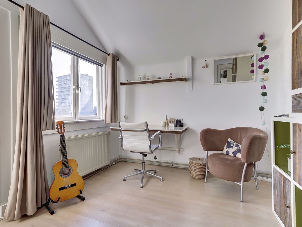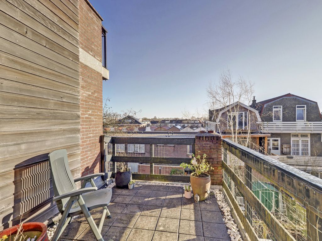 Aan de achterzijde bevindt zich nog een slaapkamer met vaste kast en toegang tot het ruime dakterras.
