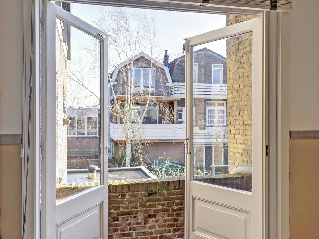 Aan de achterzijde bevindt zich een ruime slaapkamer met openslaande deuren en een vaste kast.