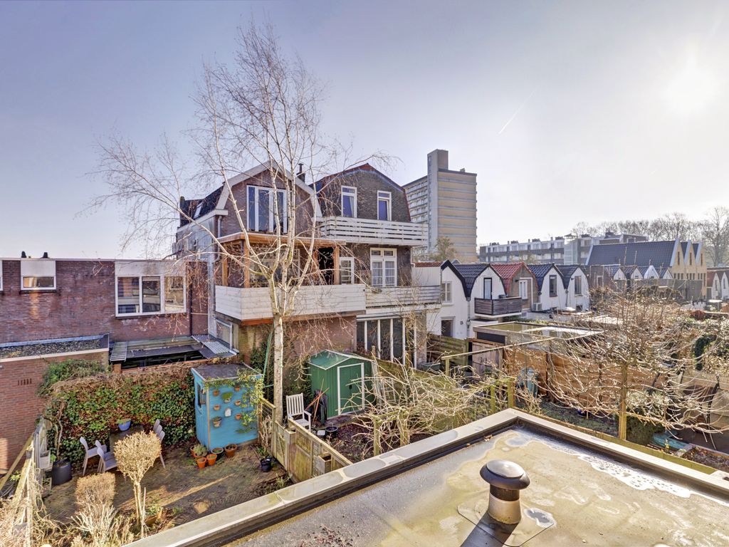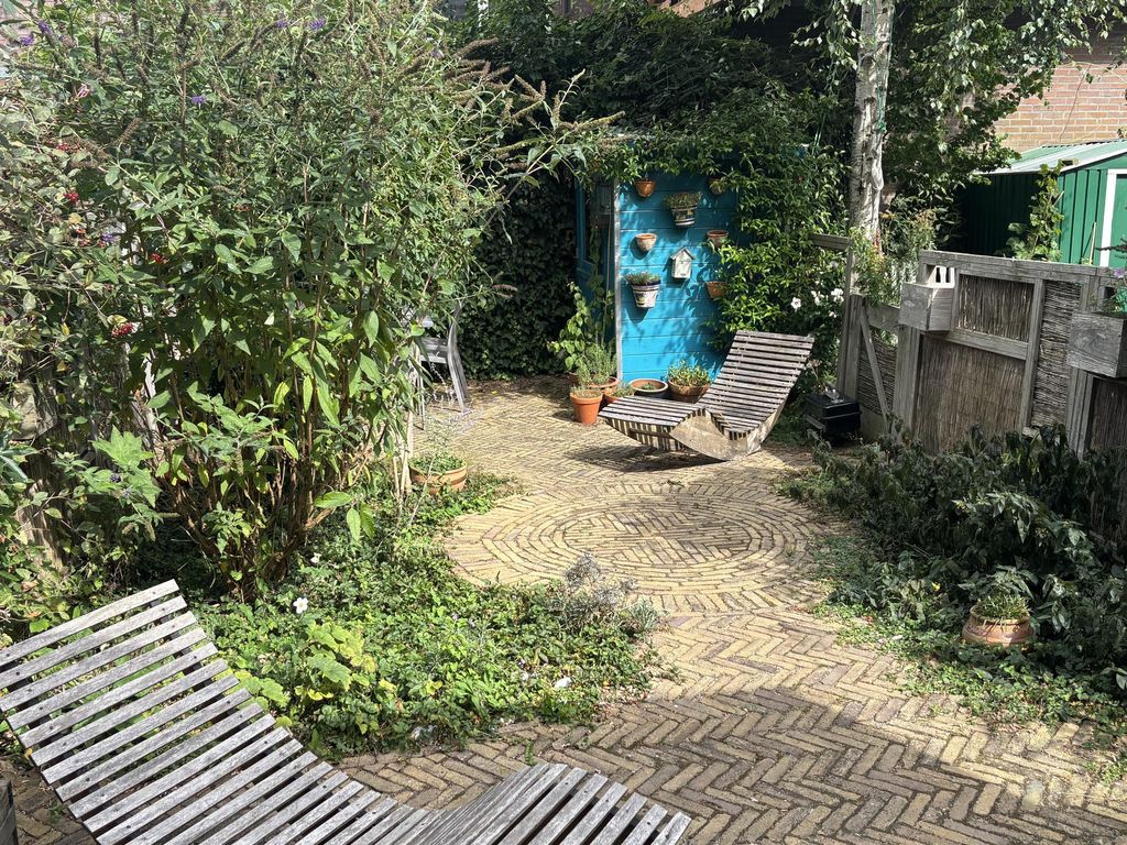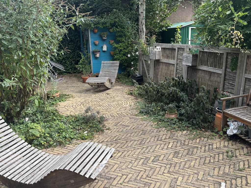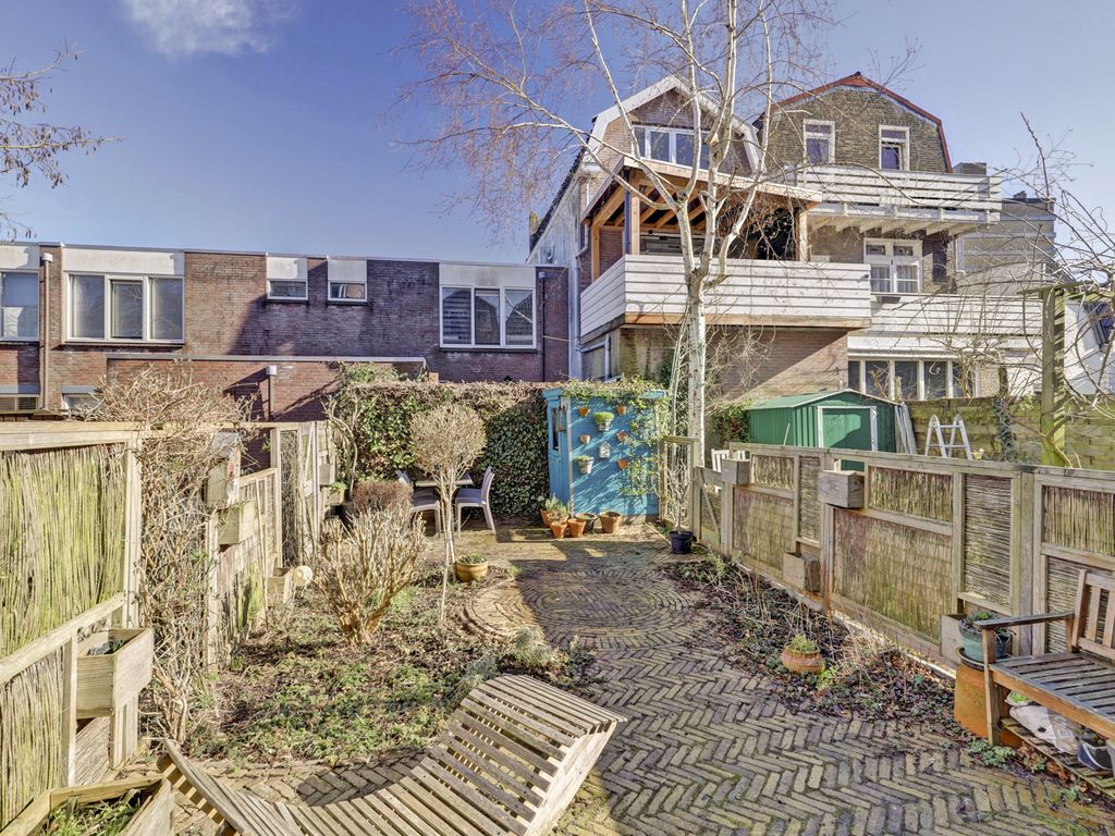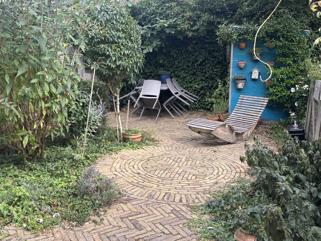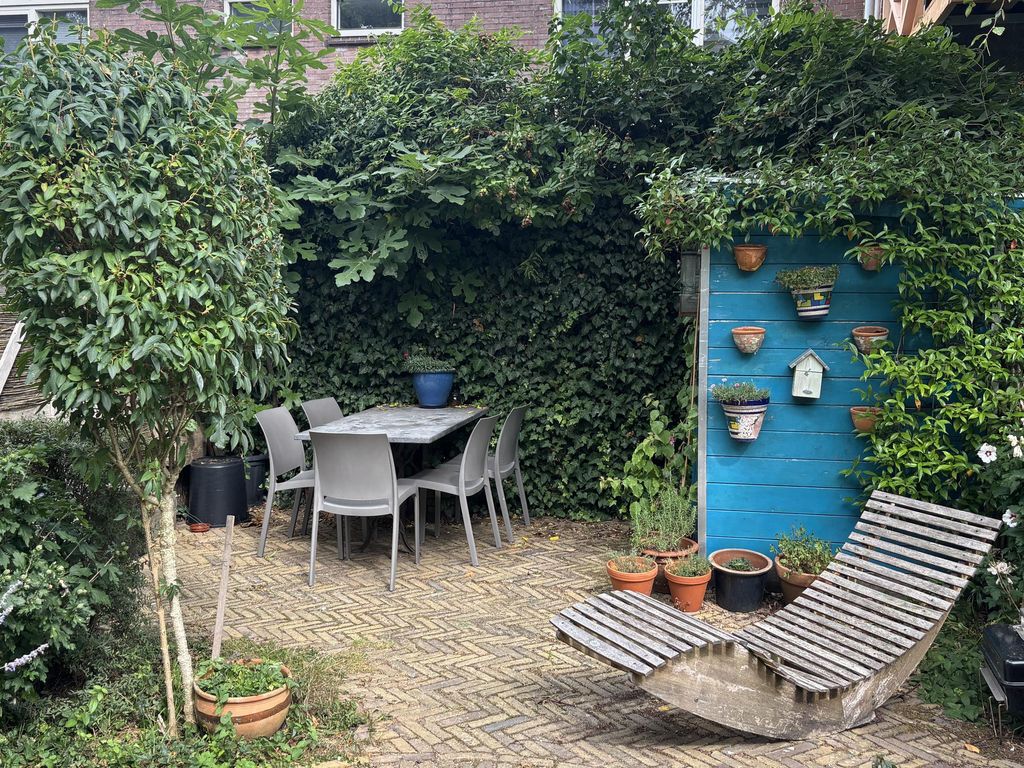 De woning beschikt over meerdere buitenruimtes. Aan de achterzijde bevindt zich een zonnige achtertuin grenzend aan de woonkeuken. De tuin beschikt over een houten berging en een achterom. Daarnaast beschikt de woning over een dakterrasje aan de voorzijde en een ruim dakterras aan de achterzijde op de tweede verdieping. Hierdoor is er altijd een fijne plek om buiten te zitten en van de zon te genieten.