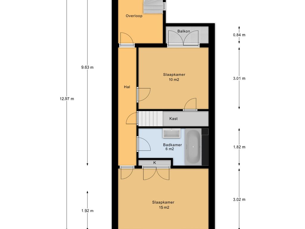 Via de vaste trap bereik je de tweede verdieping met overloop en dakraam.