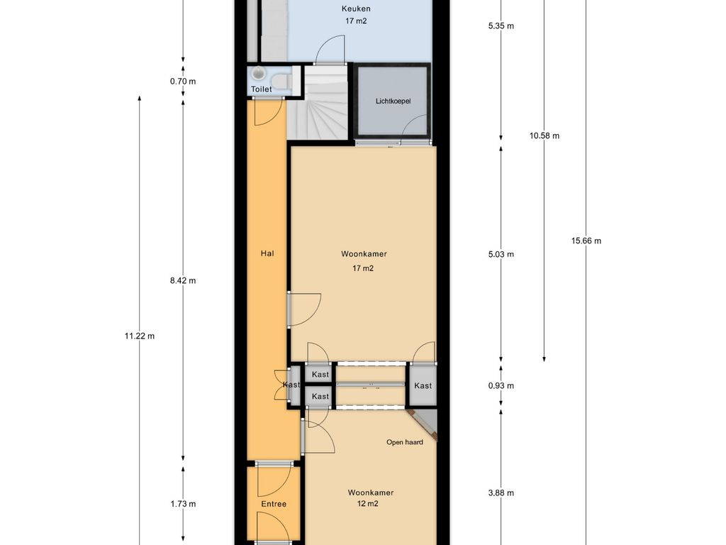 - 50 m² gelegen op het noordoosten met achterom