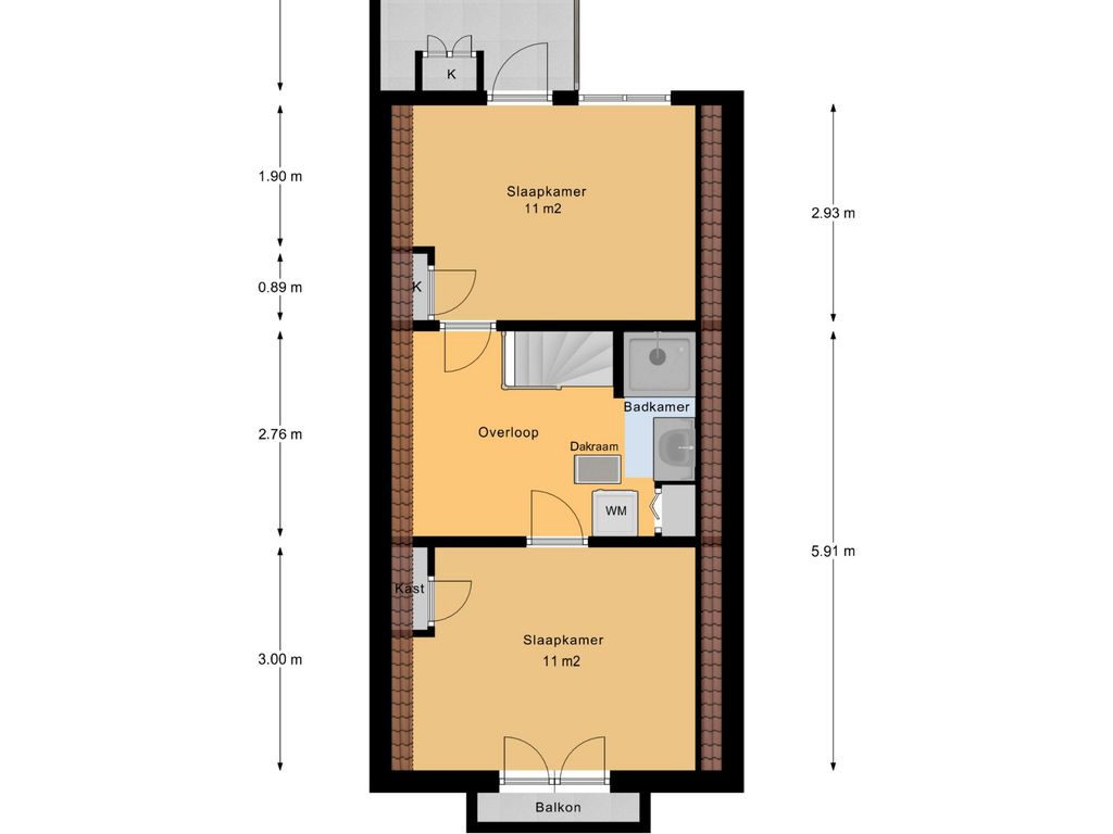 Aan de voorzijde ligt een slaapkamer met openslaande deuren naar een charmant dakterrasje.