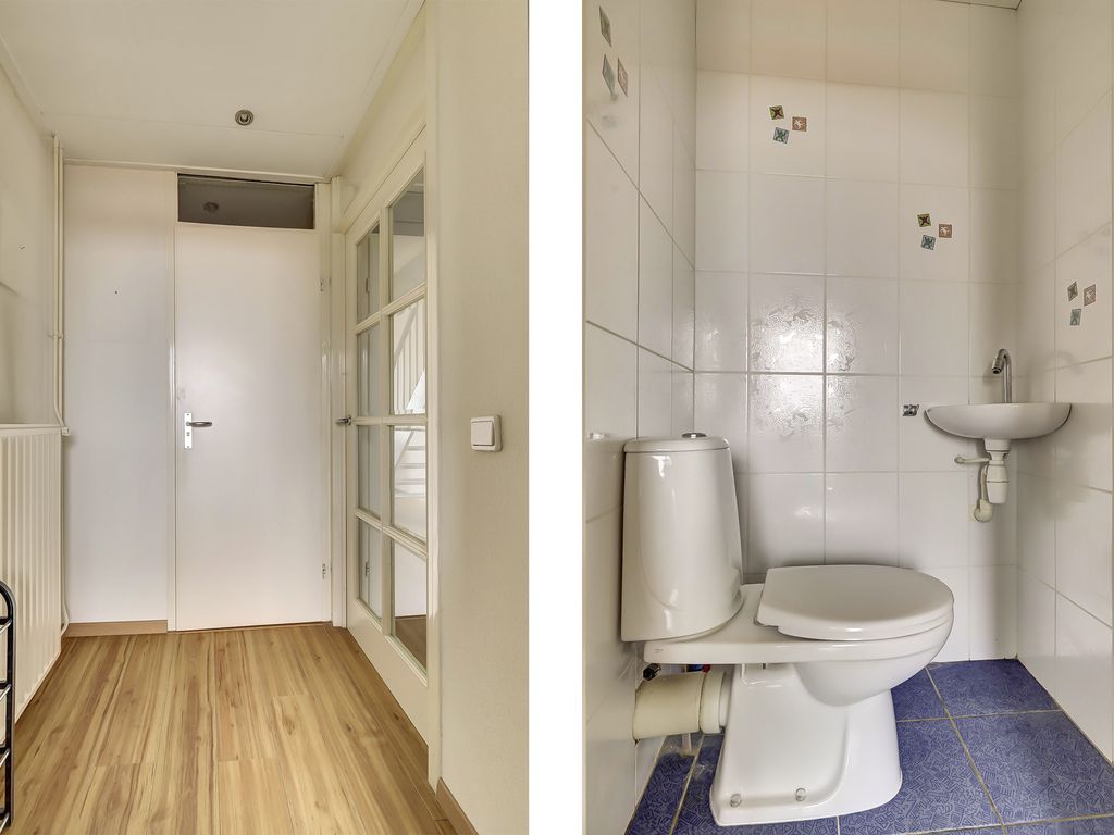 Via de entree kom je in de hal met meterkast (4 groepen en aardlekschakelaar) en een separaat toilet met fontein.