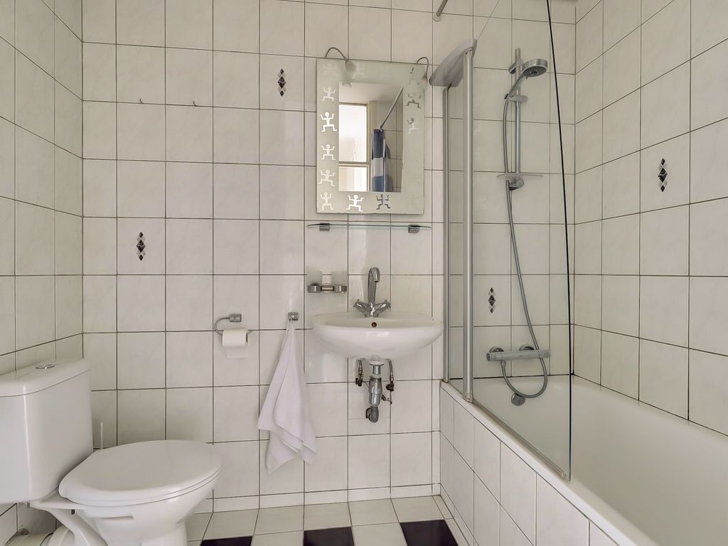 De badkamer van ca. 4m² is centraal gelegen en voorzien van een toilet, wastafel en ligbad met douche.