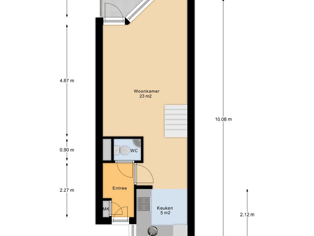 - 4 m² gelegen op het oosten