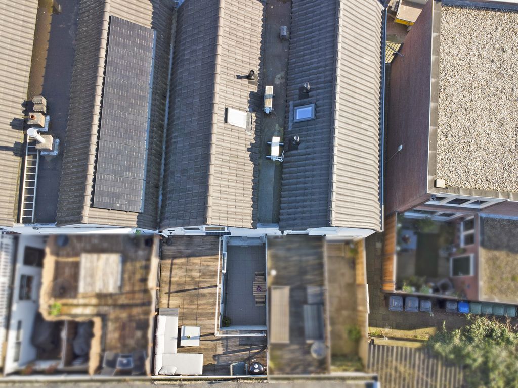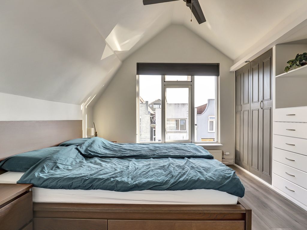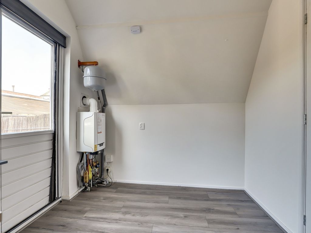 Aan de achterzijde ligt slaapkamer 1 (ca. 8 m²) met opstelplaats van de Remeha Tzerra Ace 28c CW4 (2023). Vanuit deze kamer is er directe toegang tot het ruime en zonnige dakterras van ca. 16 m², gelegen op het zuidwesten en voorzien van een hardhouten vlonder. Hier kun je van ’s morgens tot ’s avonds heerlijk van de zon genieten.
