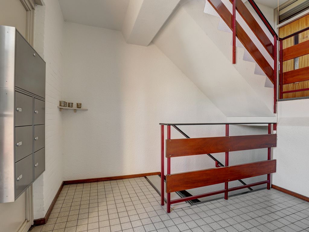 Via de centrale entree van het appartementencomplex bereikt u het trappenhuis dat toegang geeft tot de appartementen. Hier bevinden zich tevens de brievenbussen en de toegang tot de bergingen.