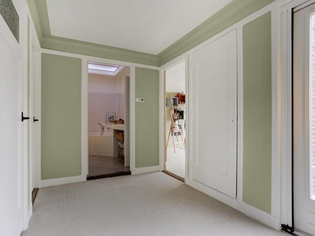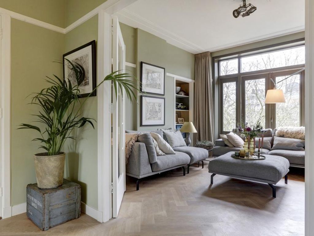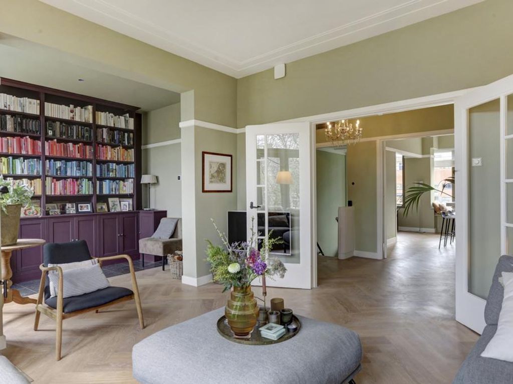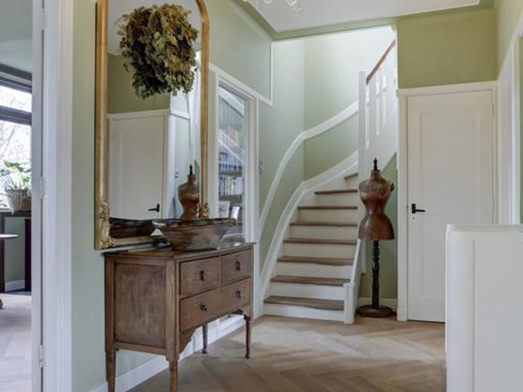 De gehele vloer van de eerste verdieping vloer is voorzien van sfeervol schilderwerk, een prachtige visgraat parket vloer, gestucte wanden en hoge plafonds met ornamenten en verwarming door de lucht-luchtwarmtepomp.