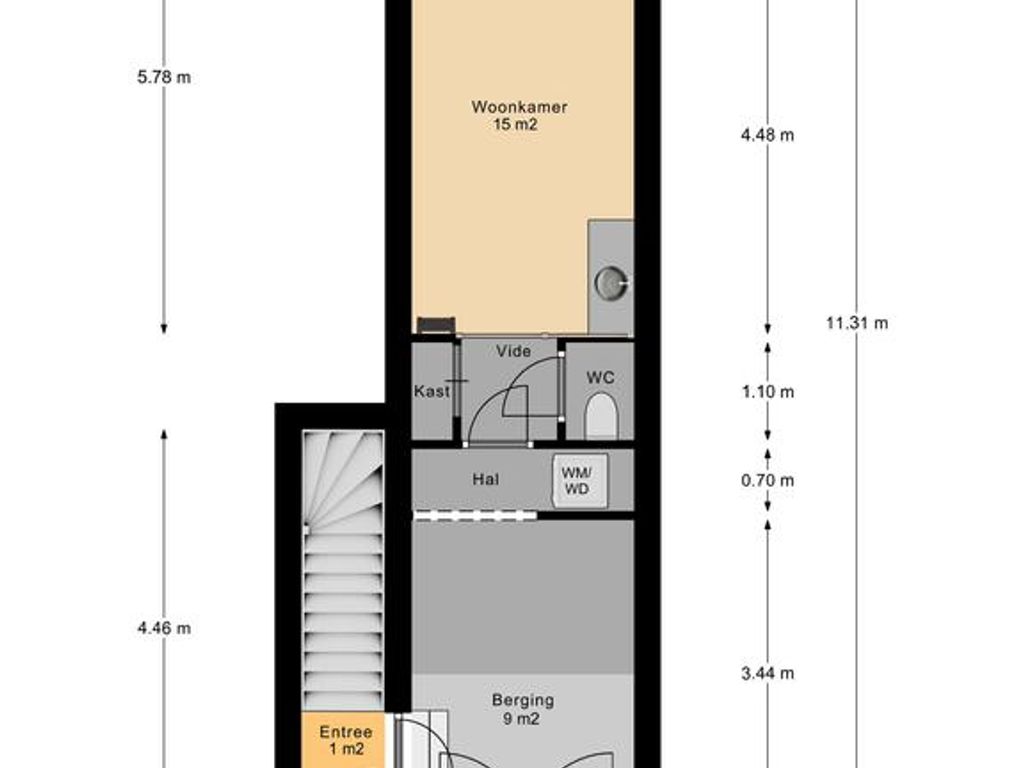 Bij binnenkomst bevindt zicht aan de rechterzijde een berging van ca. 9 m². Deze berging is gelegen aan de straatkant. Tevens bevindt zicht hier ook de wasmachine aansluiting.