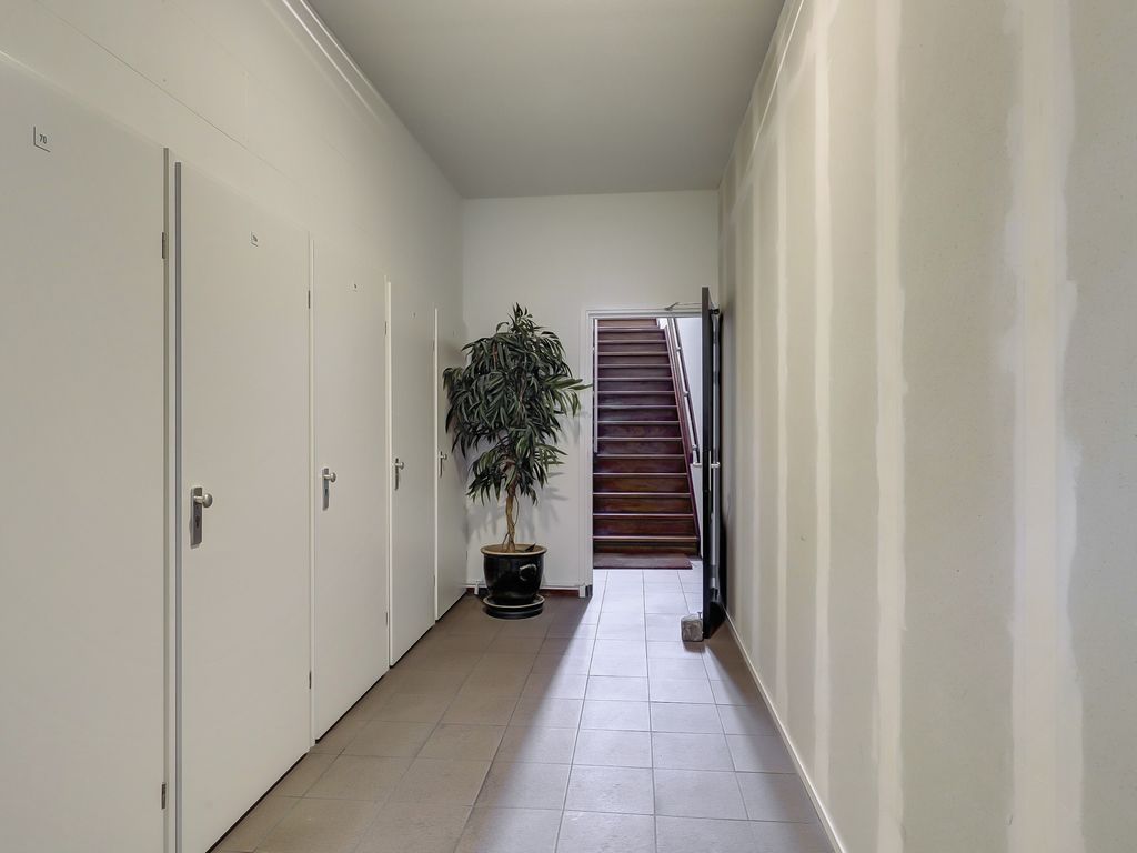 Via de gezamenlijke entree in de winkelstraat bereik je het complex. Vanuit hier kom je bij de eigen voordeur van de woning op de 1e verdieping met het eigen terras van ca. 28m2.