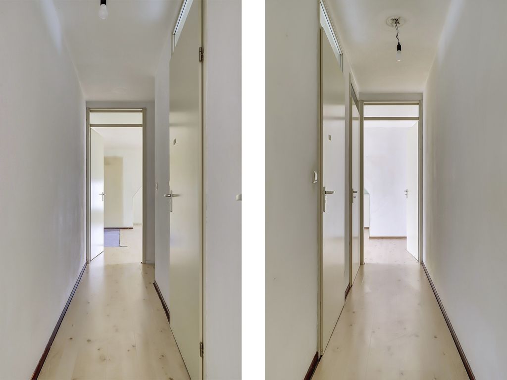 De overloop geeft toegang tot de slaapkamers, badkamer en een praktische bergruimte.
