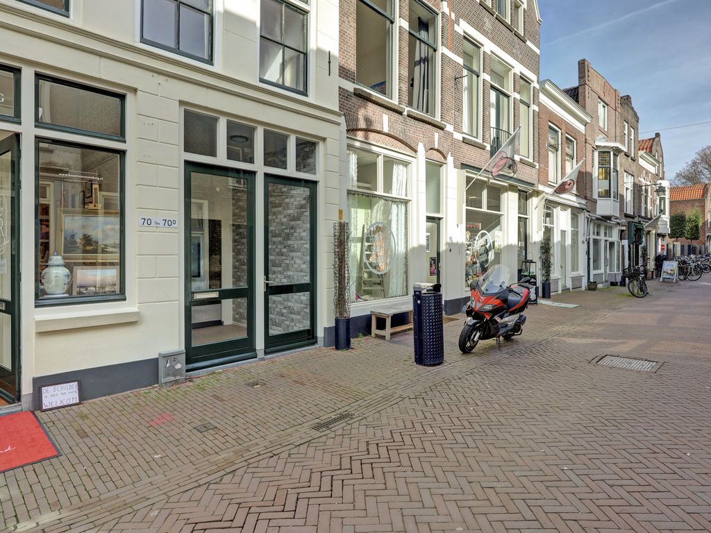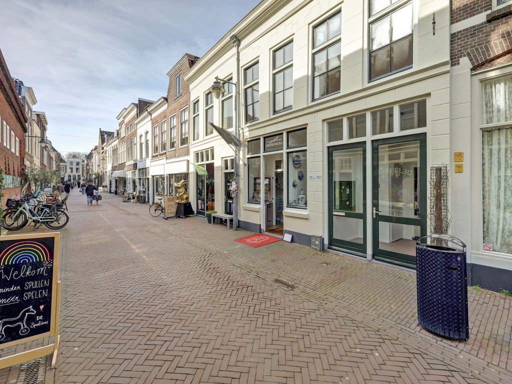 Gelegen in het historische centrum van Gouda, midden in een levendige winkelstraat, bevindt zich deze verrassend ruime en karaktervolle te moderniseren maisonettewoning met twee riante slaapkamers, een zeer ruime woonkamer van 50m2, een fijn dakterras en een eigen berging met achterom. Alle voorzieningen liggen letterlijk om de hoek: winkels, gezellige horecagelegenheden en de Markt van Gouda zijn op loopafstand bereikbaar. Ook openbaar vervoer (NS intercity en busstation) en scholen bevinden zich in de directe omgeving.