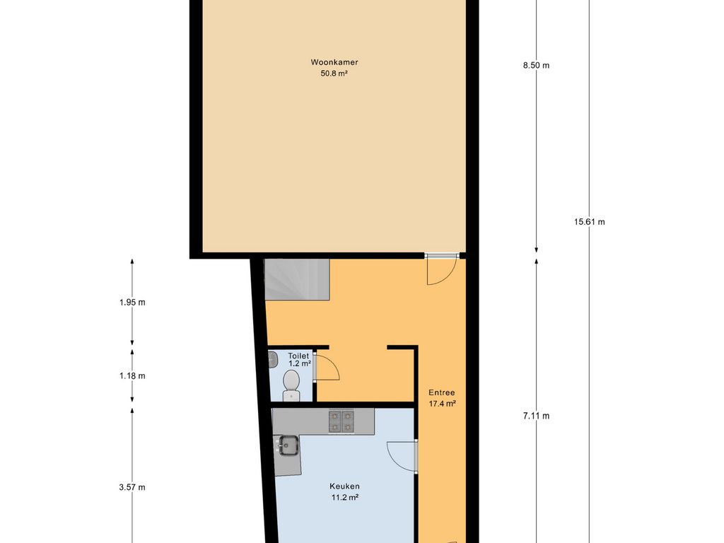 - 28 m² gelegen op het noordwesten met achterom