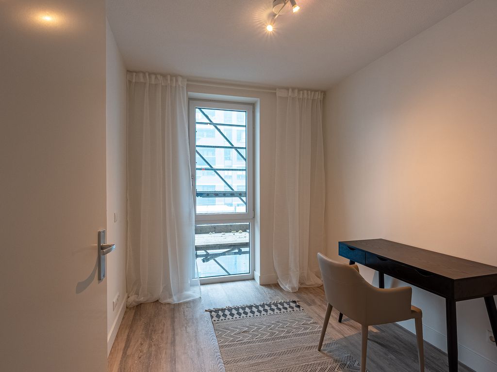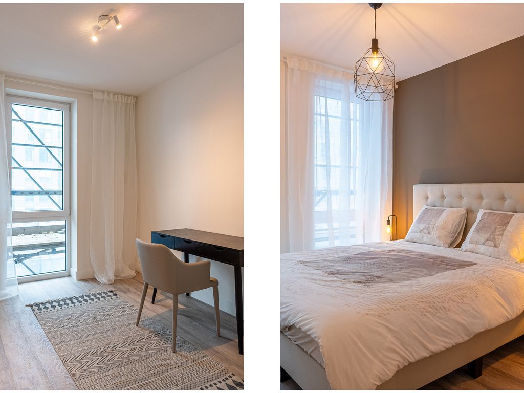 Het appartement beschikt over twee slaapkamers. De hoofdslaapkamer is ruim genoeg voor een tweepersoonsbed en kledingkast, de tweede kamer is ideaal als werk- of logeerkamer.