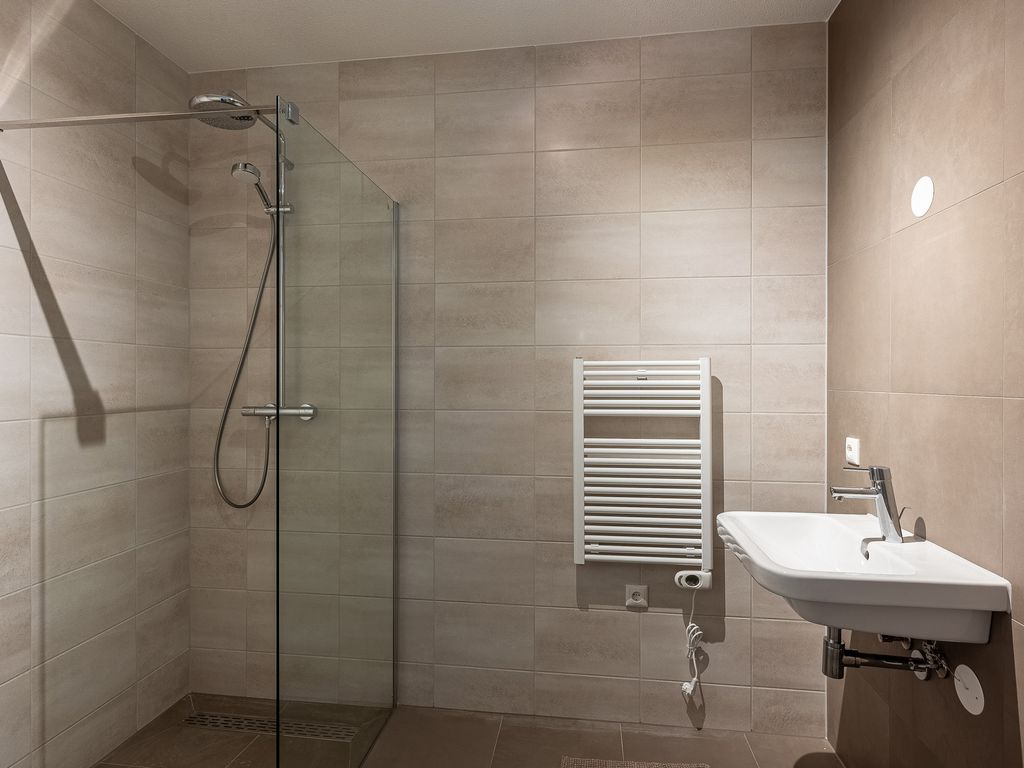 - Douche, wastafel, inloopdouche en vloerverwarming
