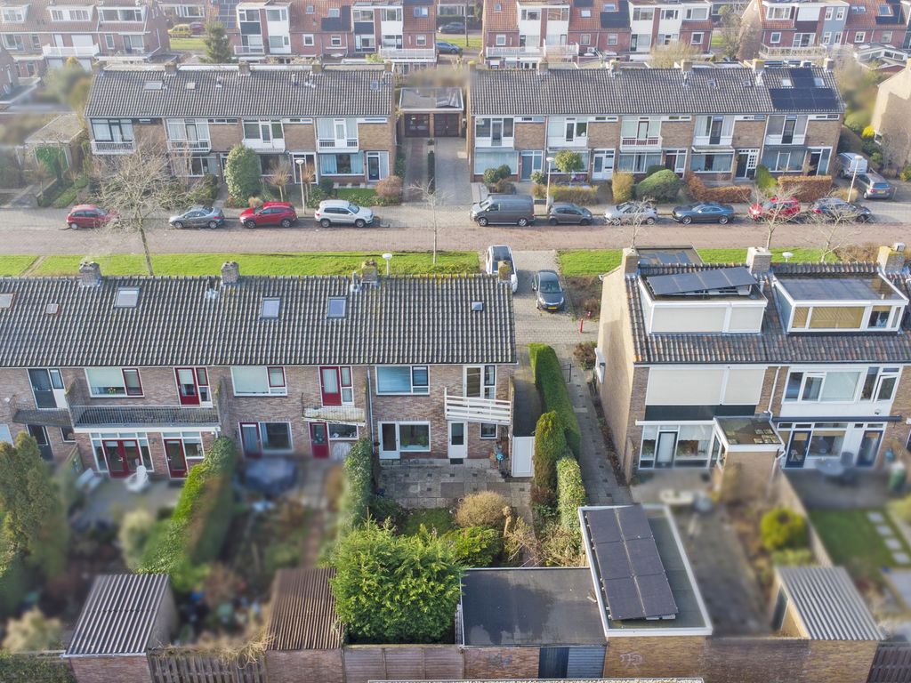 Aan zeer ruim opgezette straat met groenzone gelegen hoekwoning met voor-, zij- en achtertuin met dubbele stenen berging. De woning is gunstig gelegen ten opzichte van supermarkten, scholen, recreatiegebieden Reeuwijkse Plassen en Goudse Hout en verrassend dicht bij het historische centrum en NS station. Bouwjaar 1959, woonoppervlakte circa 78 m², inhoud circa 318 m³, externe bergruimte circa 10 m².
