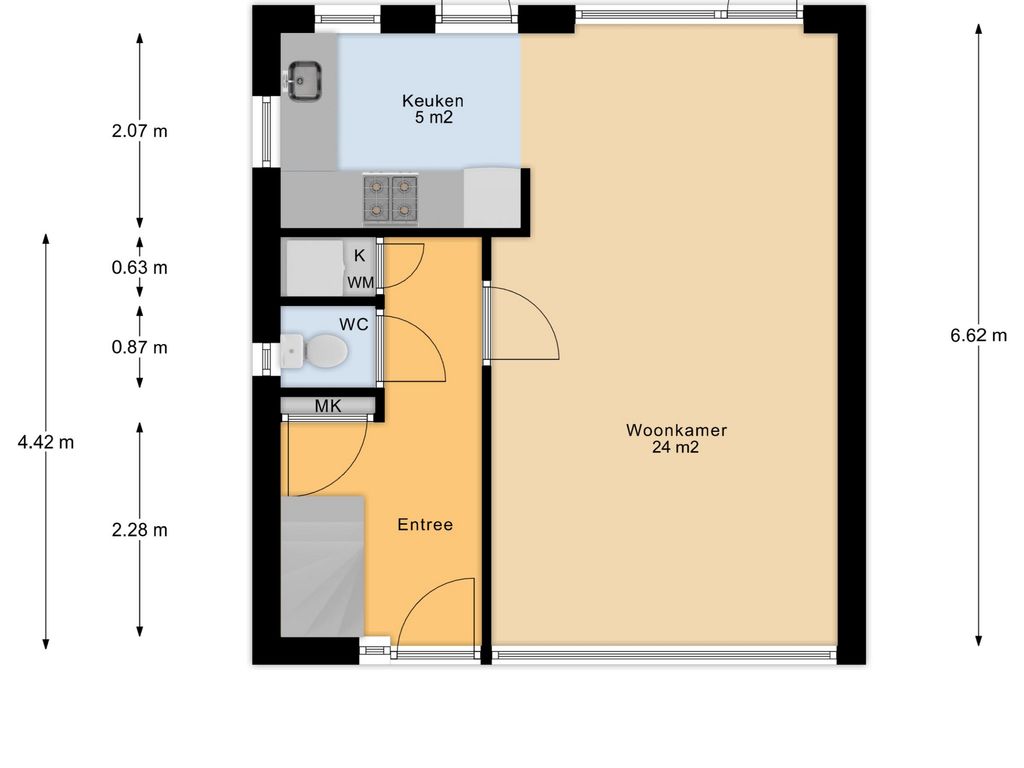 Keuken ca. 2.07x2.55 m.