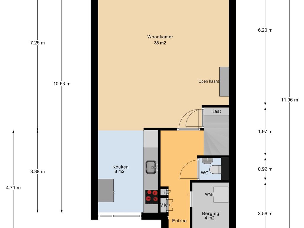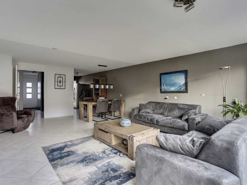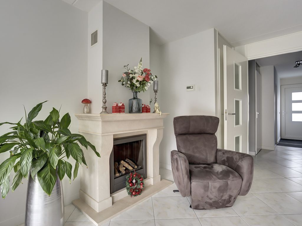 Via de entree stapt u binnen in de hal met garderoberuimte, meterkast en toilet. Vanuit hier heeft u toegang tot de berging met wasmachineaansluiting en de trapopgang. De ruime, in 2011 uitgebouwde, woonkamer van circa 38 m² is een heerlijke leefruimte waar direct het licht en de ruimte opvallen. Grote raampartijen en openslaande deuren naar de tuin met mobiele terrasoverkapping zorgen voor een prettige verbinding met buiten. De gashaard vormt een sfeervol middelpunt in de woonkamer en maakt dit een fijne plek om te ontspannen. De lichte plavuizen vloer met vloerverwarming geeft het geheel een moderne en rustige uitstraling.