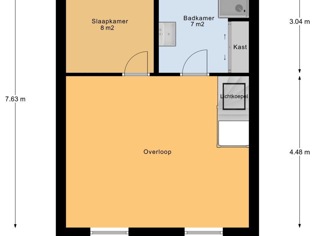 De tweede verdieping verrast met een ruime overloop die dankzij de lichtkoepel beschikt over veel daglicht. Hier bevindt zich de vierde slaapkamer van circa 8 m². Ook is er een tweede badkamer aanwezig, voorzien van een douche en wastafel. Een aparte kast biedt extra opslagruimte. Deze verdieping is uitstekend geschikt als werkverdieping, logeerruimte of een fijne extra slaapkamer.
