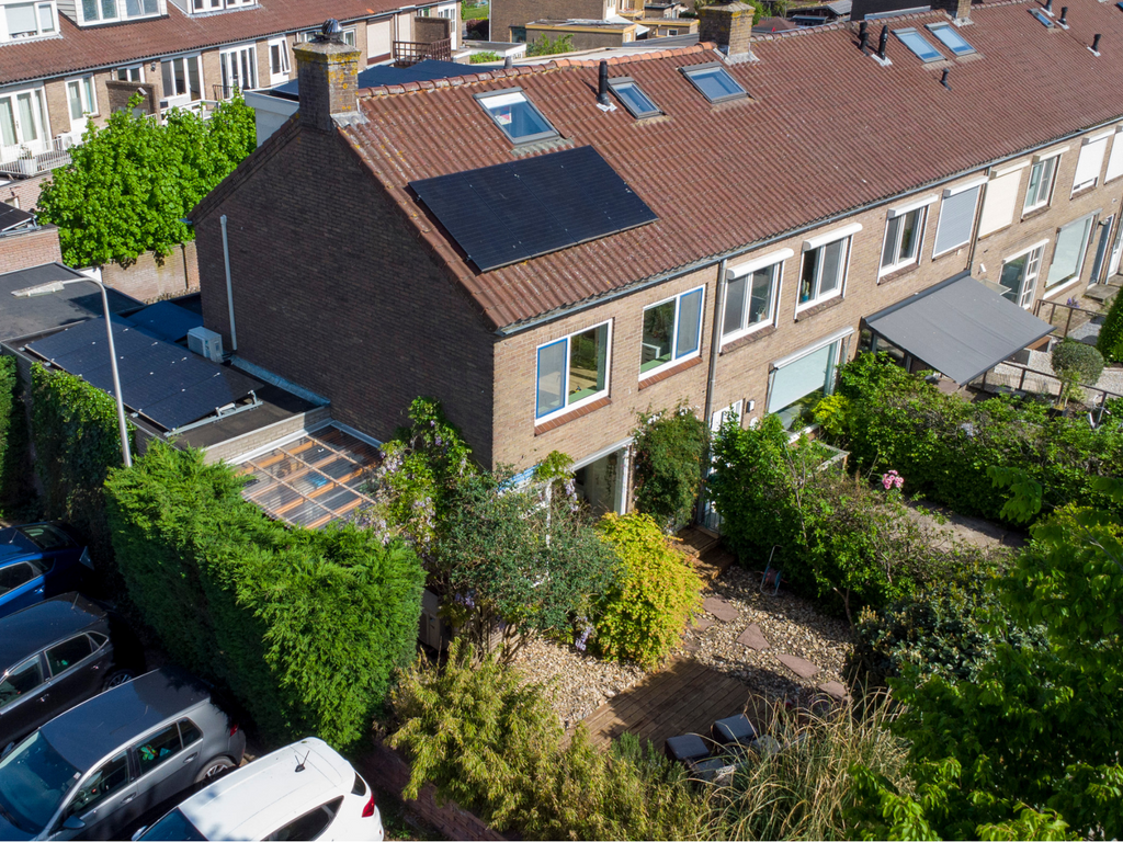 De voortuin is een van de unieke kenmerken van deze woning: met ca. 83 m² aan oppervlakte, een gunstige ligging op het zuidoosten en veel privacy is dit een ideale plek om van het buitenleven te genieten. De tuin is fraai aangelegd en biedt volop ruimte voor ontspanning, spelen of gezelligheid met vrienden en familie. Daarnaast is hier een ruime fietsoverkapping die tevens fungeert als berging. De voortuin is zo goed als geheel wintergroen.