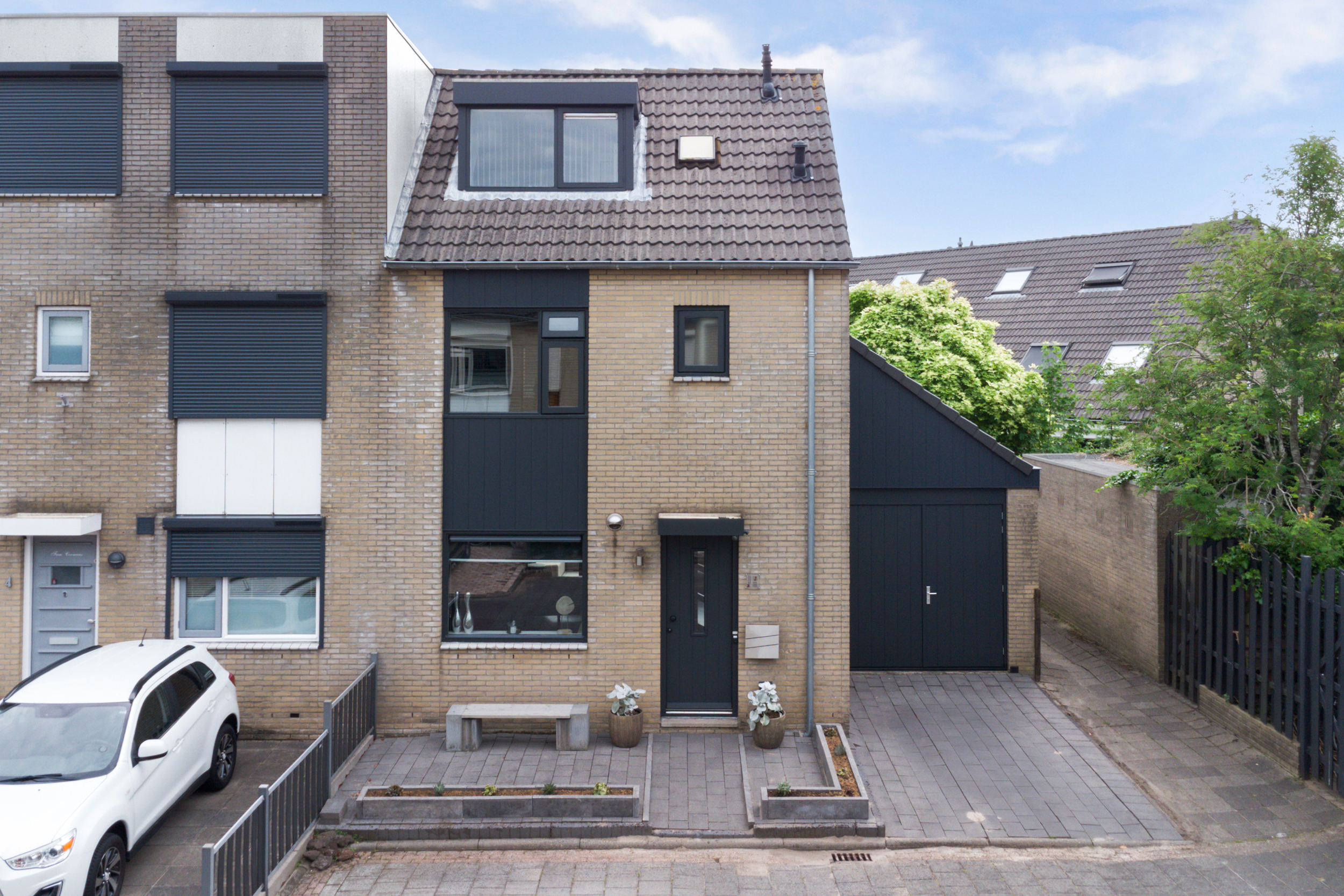 De achtertuin beschikt over een schuur (welke in matige staat verkeert) en biedt volop privacy. Aan de voorzijde bevindt zich een oprit met parkeergelegenheid op eigen terrein. Voor de garage kan een 2e auto geparkeerd worden en kan eventueel een oplaadpunt voor een EV worden aangebracht.