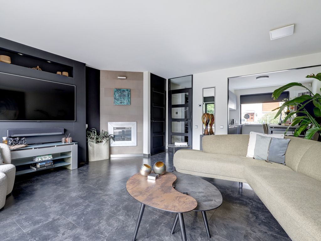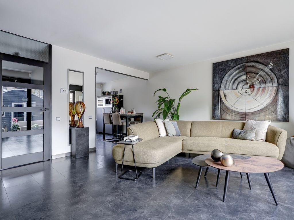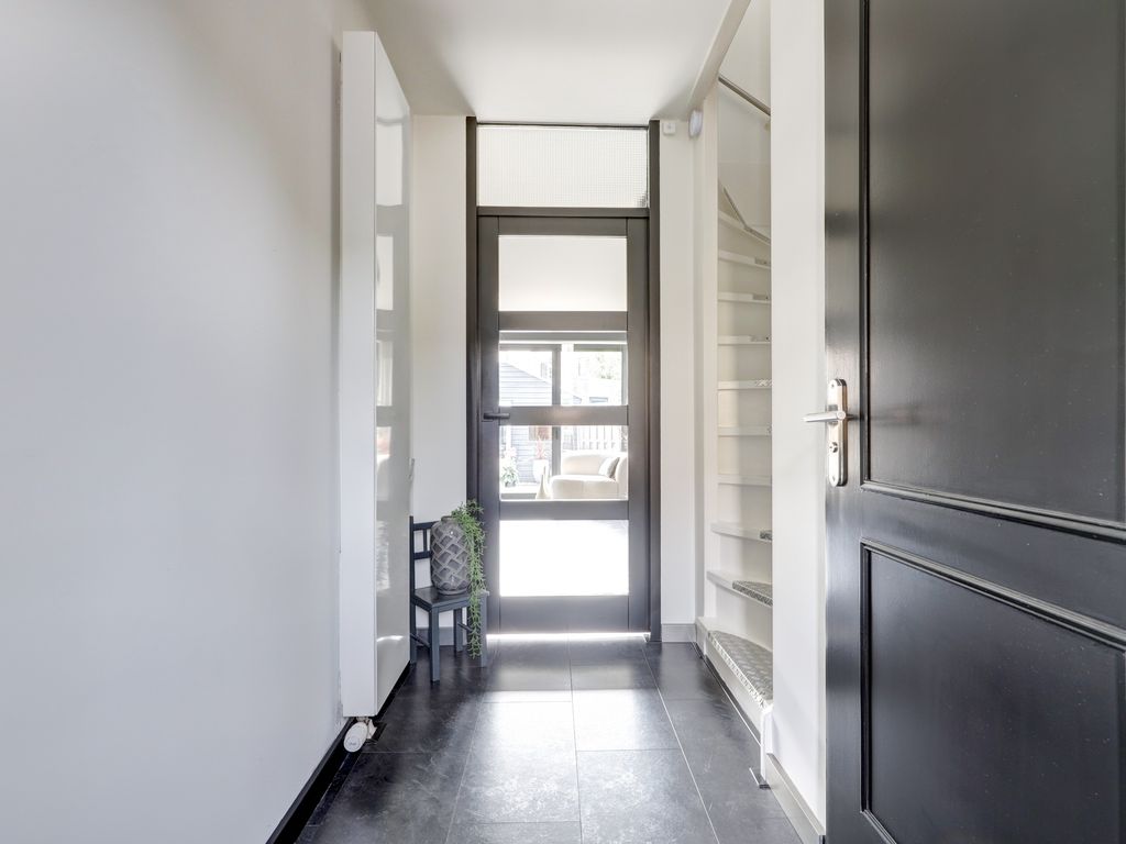 Bij binnenkomst treft u een verzorgde entree (met kast, meterkast en toilet), waarna u binnenstapt in de lichte woonkamer van ca. 4,94 m diep en 5,14 m breed. De prachtige achterpui met vouwdeuren (2021) met HR++ glas zorgt voor veel lichtinval en een naadloze verbinding met de tuin. De woonkamer is voorzien van een moderne open haard, laminaatvloer en strak gestucte wanden. Daarnaast is er bij de achterpui een koof gemaakt voor gordijnen en verlichting.
