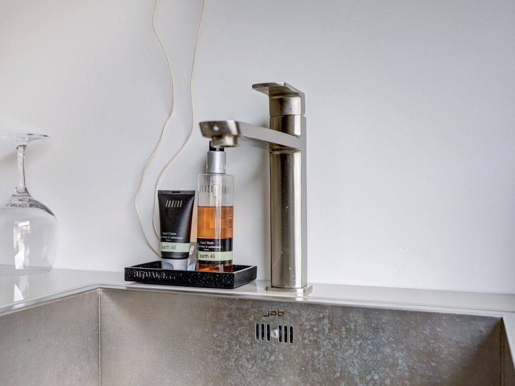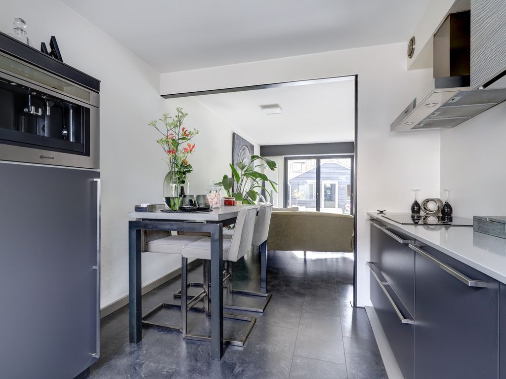 De keuken aan de voorzijde (ca. 3,15 m breed x 2,81 m diep) is geplaatst in 2013 en voorzien van een keramische kookplaat, geïntegreerde koffiemachine, combi-oven, koelkast, vriezer, vaatwasser en afzuigkap.
