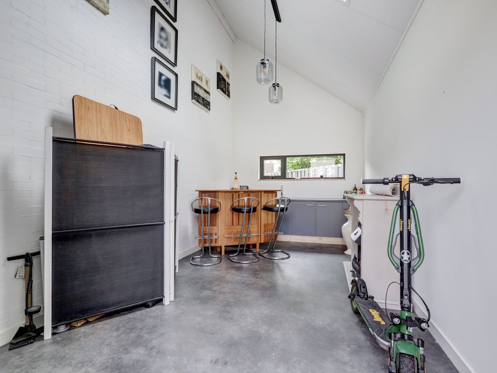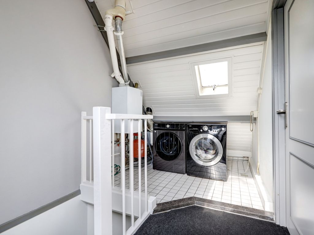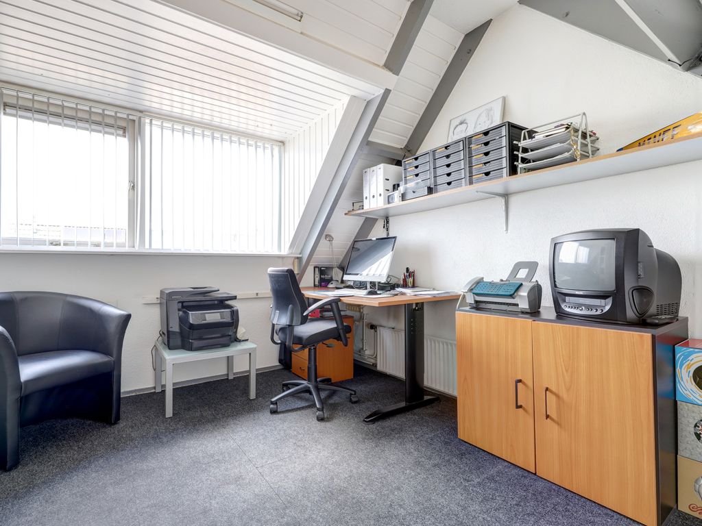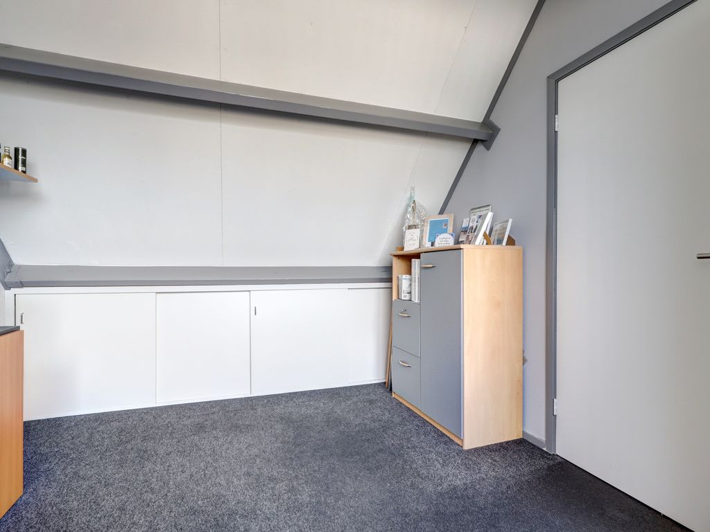 De garage (ca. 5,68 m x 2,88 m, 16 m²) naast de woning is in 2021 volledig verbouwd en geïsoleerd. Met verhoogde nok, pantry, radiator en warm-/koudwateraansluiting is deze ruimte ideaal als werkplek of studio. De achtergevel is afgewerkt met onderhoudsvrij Keralit.