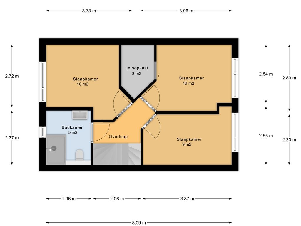 Eerste verdieping (ca. 8,09x5,14m)