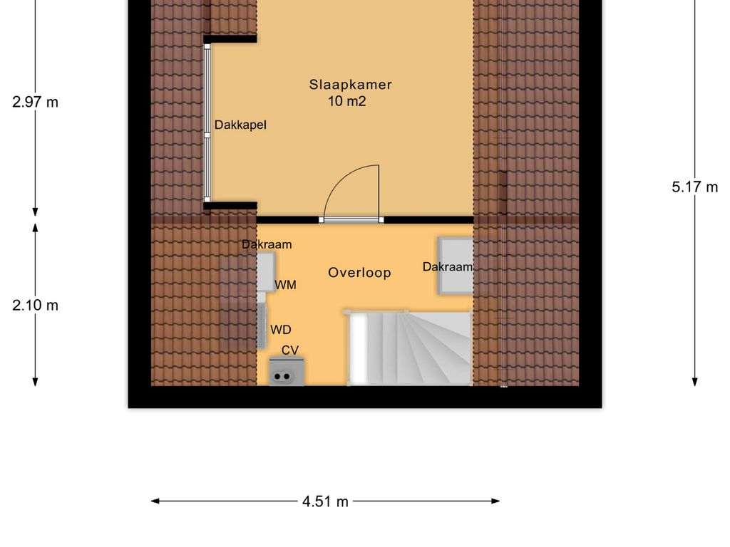 Tweede verdieping (ca. 4,51 m breed x ca. 5,17 m diep gemeten op +1.50m):