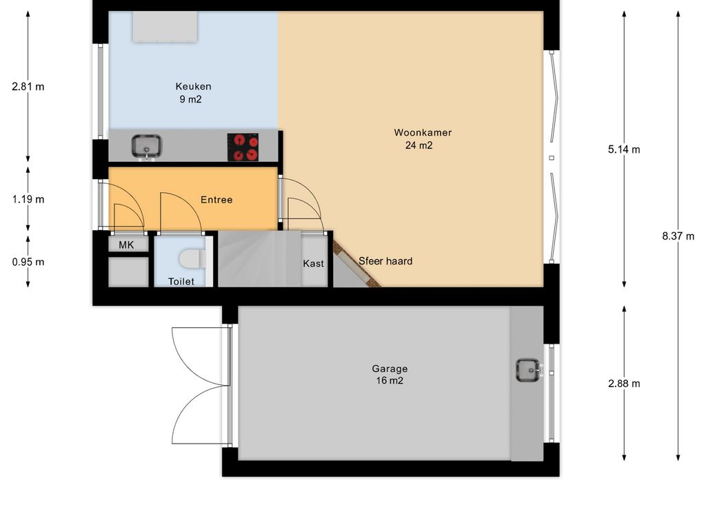 Begane grond (ca. 8,09x5,14m)
