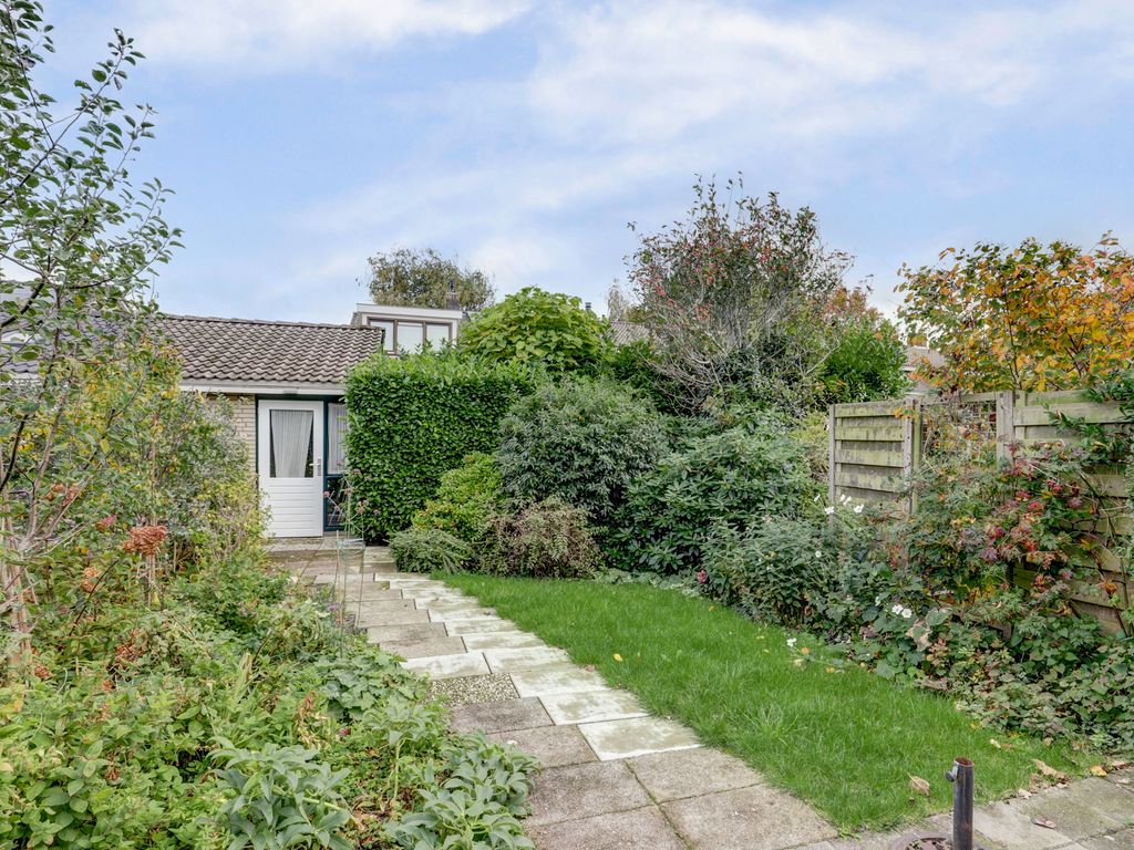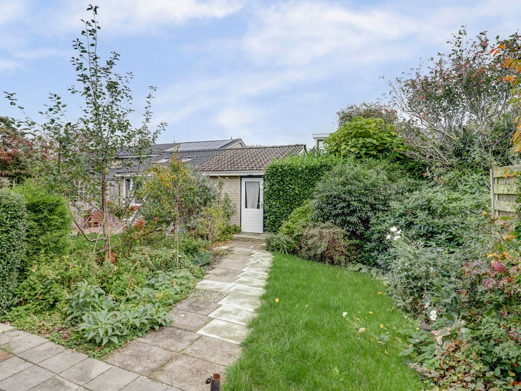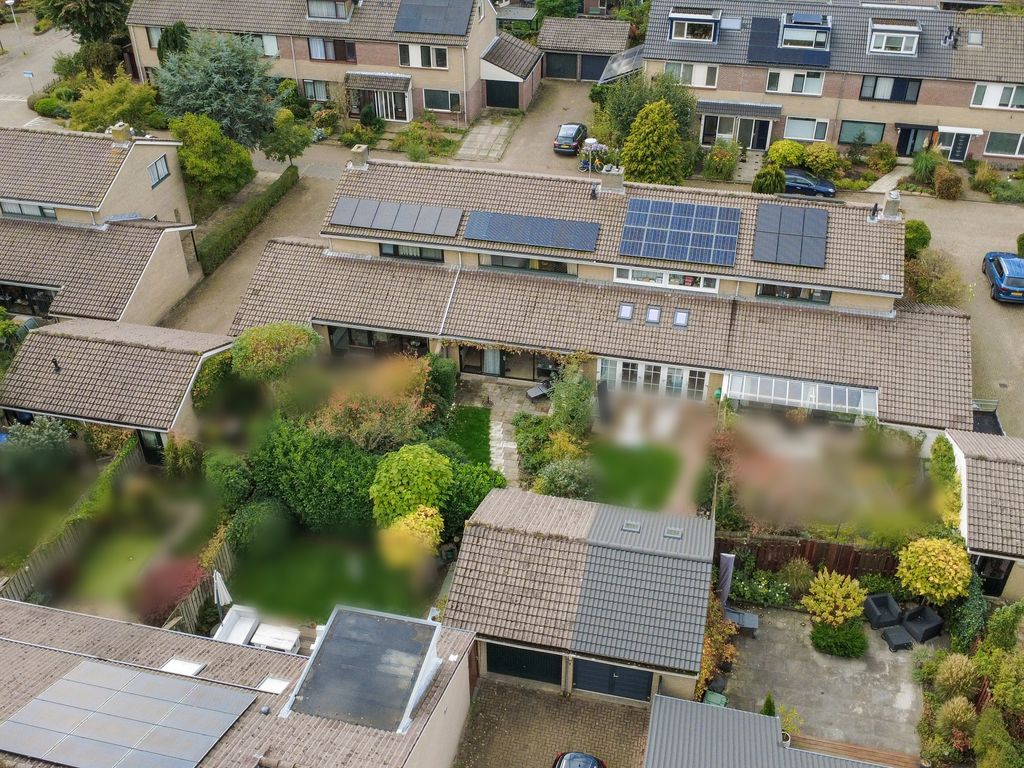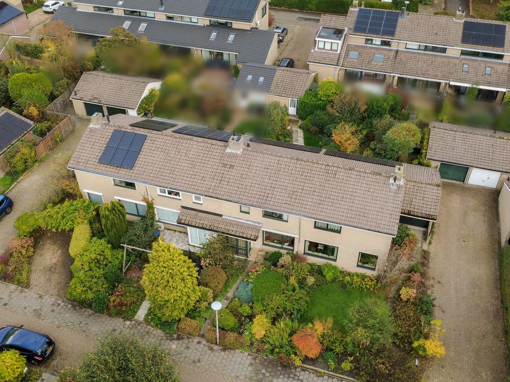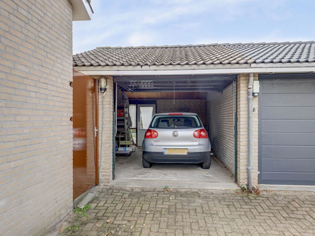 De tuin is een van de sterke punten van deze woning. Aan de voorzijde een brede, groene voortuin die zorgt voor privacy en een prettige afstand tot de straat. Aan de achterzijde een diepe tuin met volop ruimte voor meerdere terrassen, groen en speelruimte. Achterin staat een vrijstaande stenen garage met elektriciteit — ideaal voor opslag, hobby’s of als werkruimte.