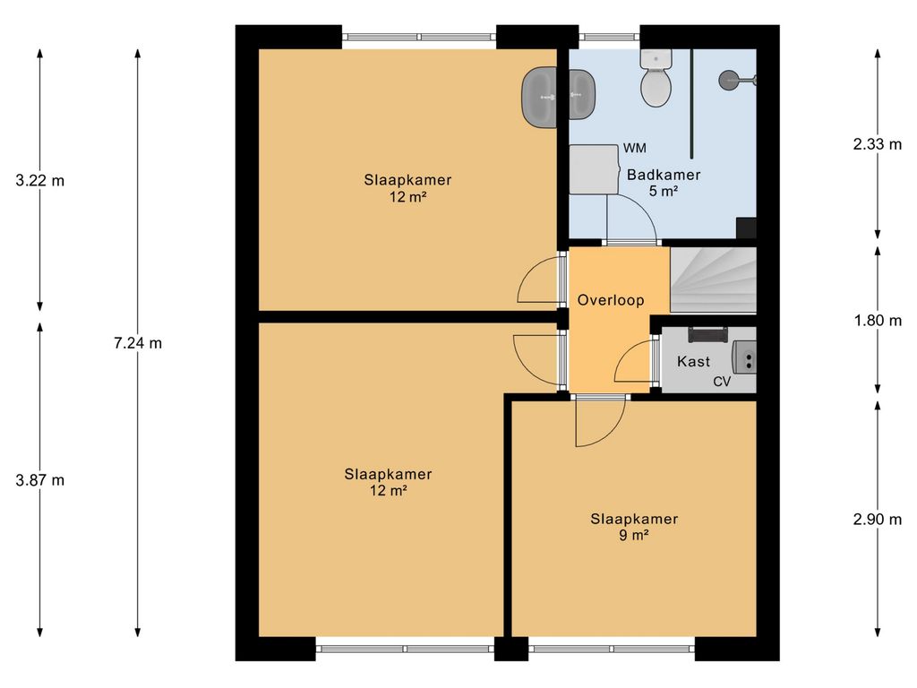 - Toilet, douche, wastafel en wasmachineaansluiting
