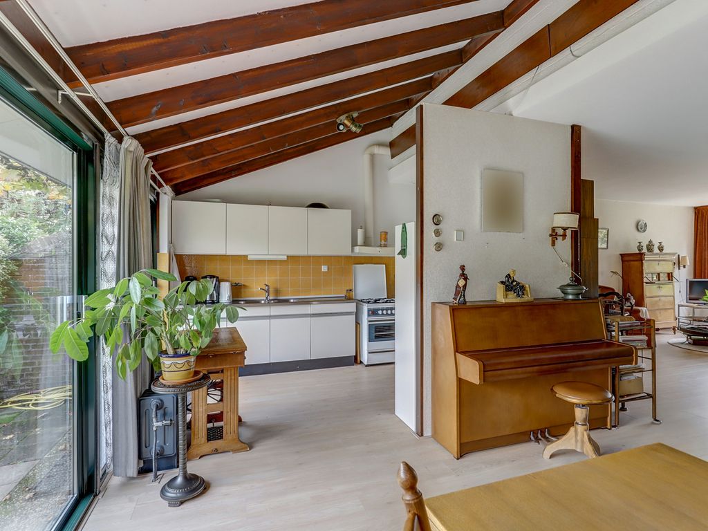 Bij binnenkomst valt direct op hoe ruim de woonkamer is opgezet. Dankzij de grote raampartijen komt er veel daglicht binnen en is er aan de voorzijde zicht op het groen en aan de achterzijde op de tuin. De schuifpui uit 2015 zorgt voor een fijne verbinding tussen binnen en buiten. De woonkamer is in 2023 voorzien van nieuw laminaat en heeft een elektrisch zonnescherm aan de voorzijde. De keuken bevindt zich aan de achterzijde. Deze is nog uitgevoerd in de oorspronkelijke opstelling, wat toekomstige bewoners de mogelijkheid geeft om hier volledig naar eigen smaak een moderne keuken te creëren.
