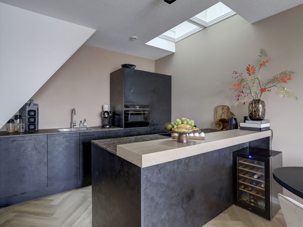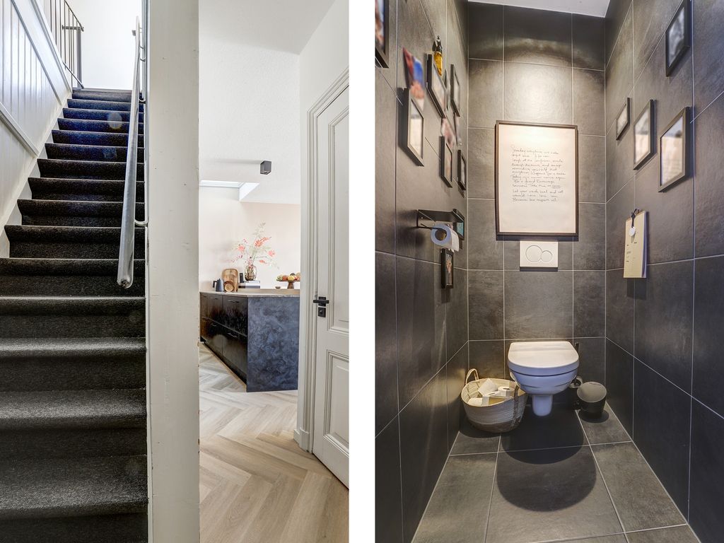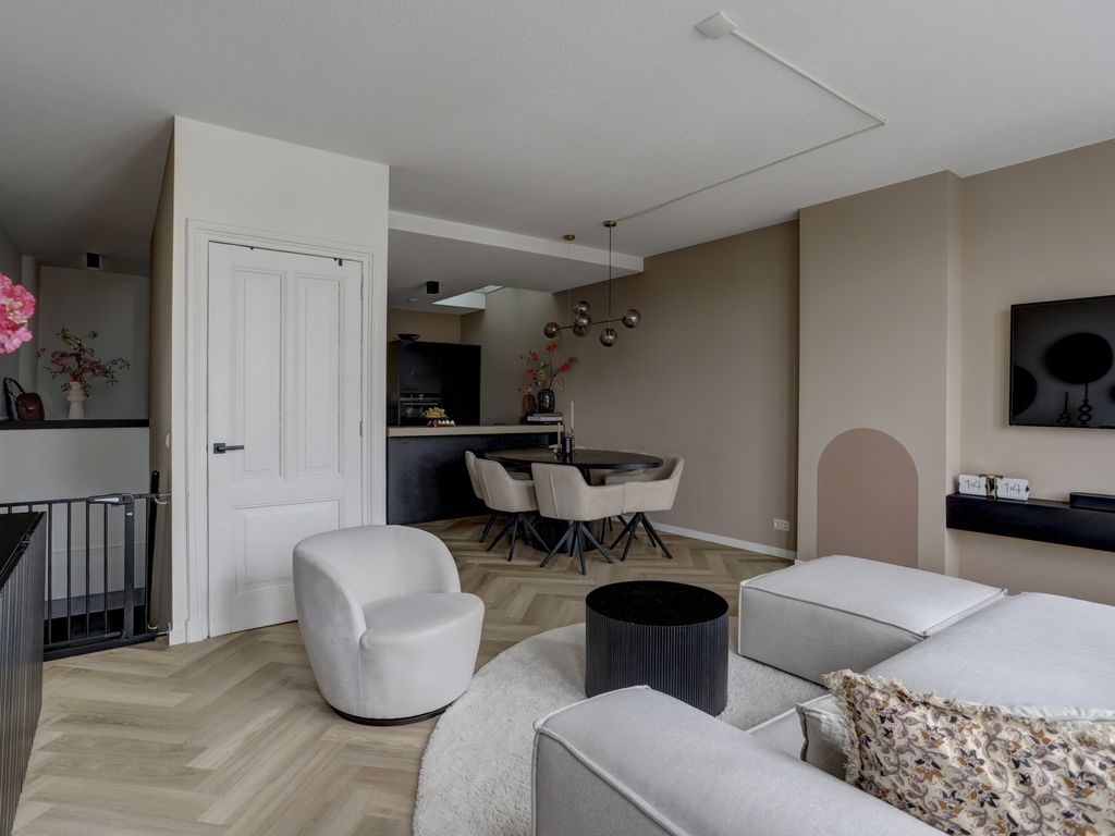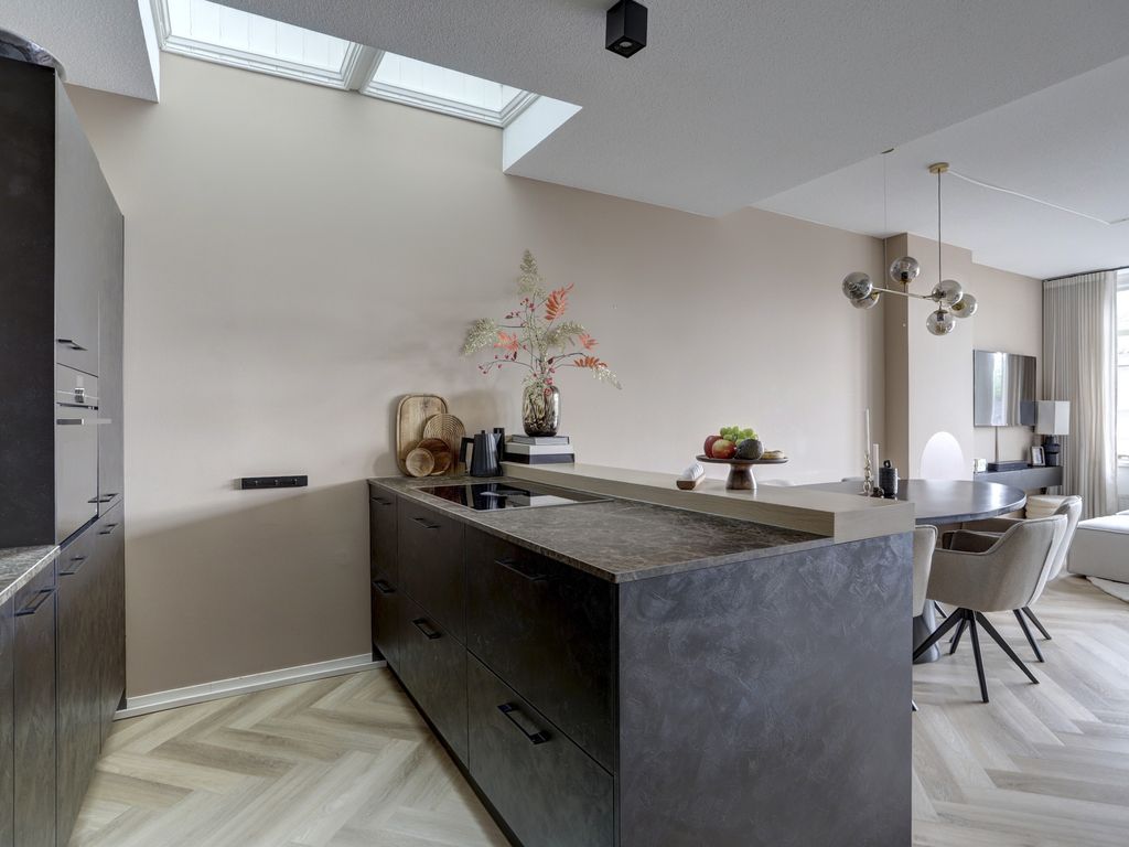 Via de nette entree en trapopgang bereik je het appartement. De eerste woonlaag (verdieping 2) biedt een ruime woonkamer (27 m²) met prachtige PVC-vloer, strak gestucte wanden en veel natuurlijk licht. De open keuken welke is voorzien van een dakraam/lichtkoepe; (9 m²) is een echte eyecatcher, voorzien van een composiet werkblad en hoogwaardige inbouwapparatuur van Siemens, waaronder een combimagnetron, vaatwasser en koel-vriescombinatie. Ook is er een luxe kookplaat met geïntegreerde afzuiging van Bora. Een moderne toiletruimte en praktische kast met wasmachineaansluiting en groepenkast (7 groepen incl. kookgroep en aardlekschakelaar) maken deze verdieping compleet.