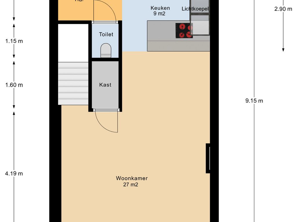 - 9 m² gelegen op het westen