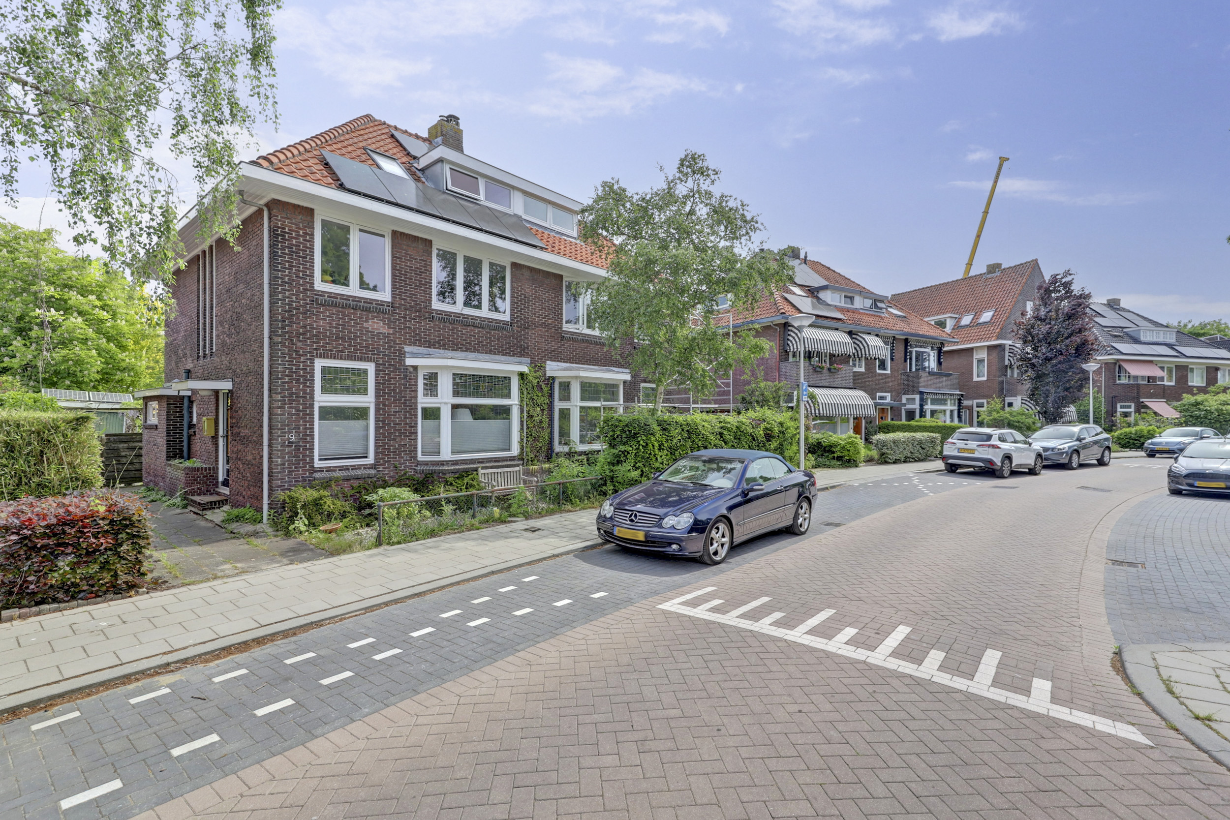 Karakteristieke 2-onder-1 kapwoning met woonkamer ensuite, moderne keuken en badkamer, 5 slaapkamers, balkon, voortuin, oprit met parkeergelegenheid en zeer royale en zonnige achtertuin met berging. Deze woning is voorzien van enkele authentieke details (granitovloer en glas-in-lood ramen), energielabel B en 7 zonnepanelen. Bouwjaar ca. 1932, woonoppervlakte ca. 130 m², inhoud ca. 467 m³, gebouwgebonden buitenruimte ca. 4 m², externe bergruimte ca. 16 m², eigen grond 244 m².