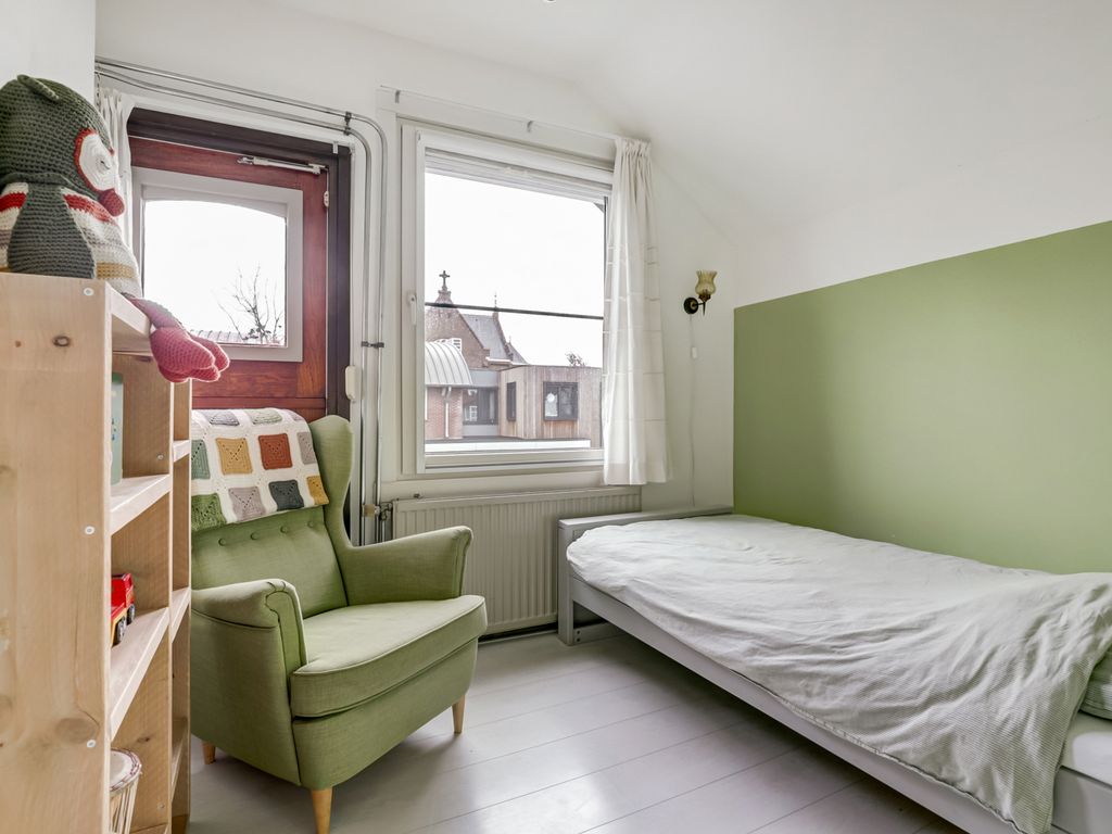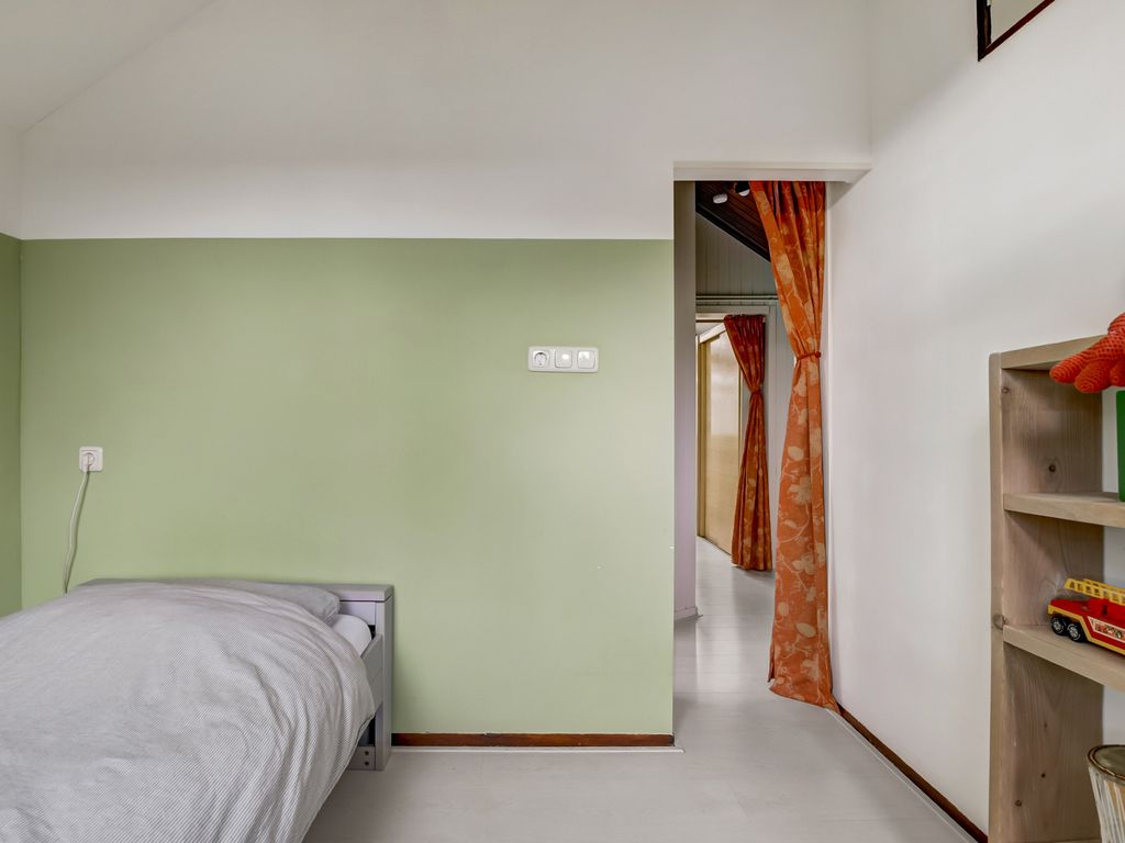 Op de eerste verdieping zijn twee slaapkamers gesitueerd. De slaapkamer aan de voorzijde is ruim en licht, met kunststof kozijnen (2005) en een vaste kast. De slaapkamer aan de achterzijde heeft eveneens kunststof kozijnen, een geïsoleerd dak (2021) en praktische bergruimte onder het schuine dak.