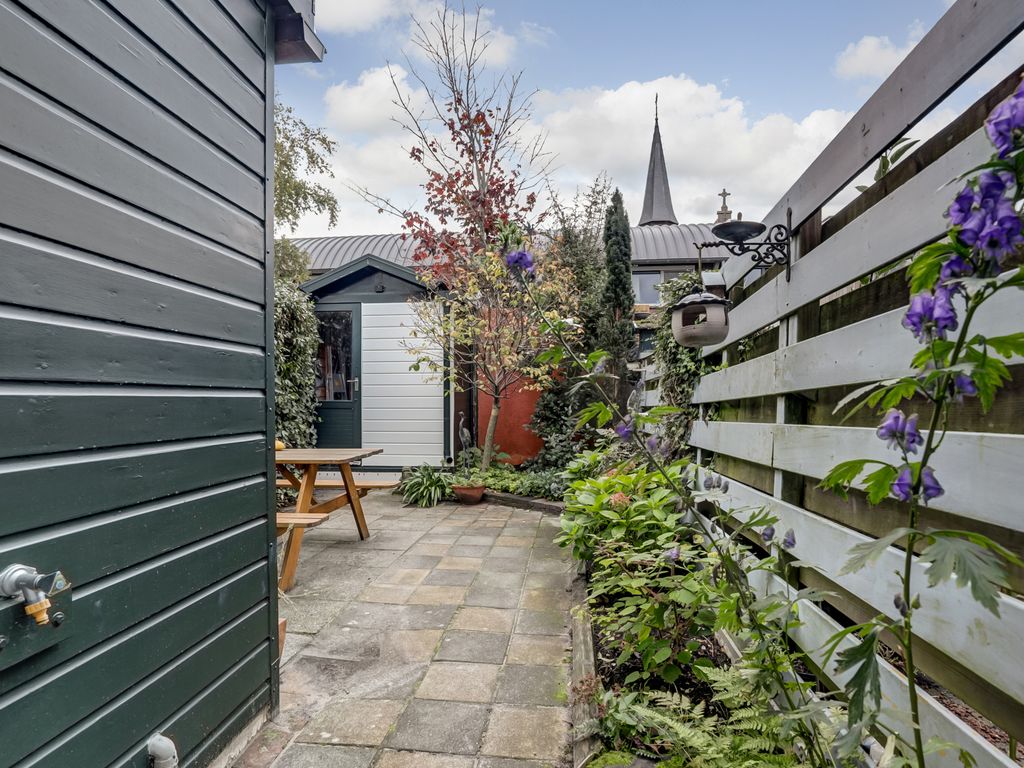 De tuin is een plek waar u midden in de stad toch volop rust en privacy ervaart — een fijne combinatie van stadse levendigheid en eigen buitenruimte.