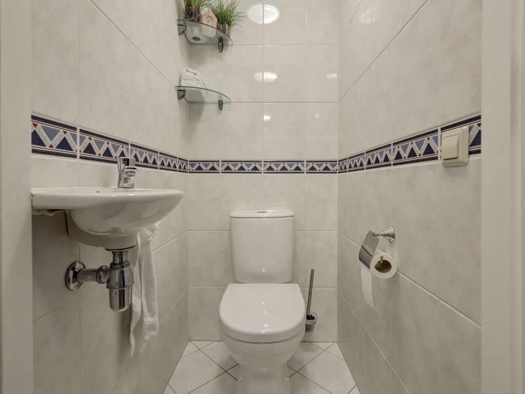 Via de verzorgde voortuin en eigen oprit bereikt u de entree van de woning. De hal biedt toegang tot de meterkast, toilet en de trapopgang naar de eerste verdieping.