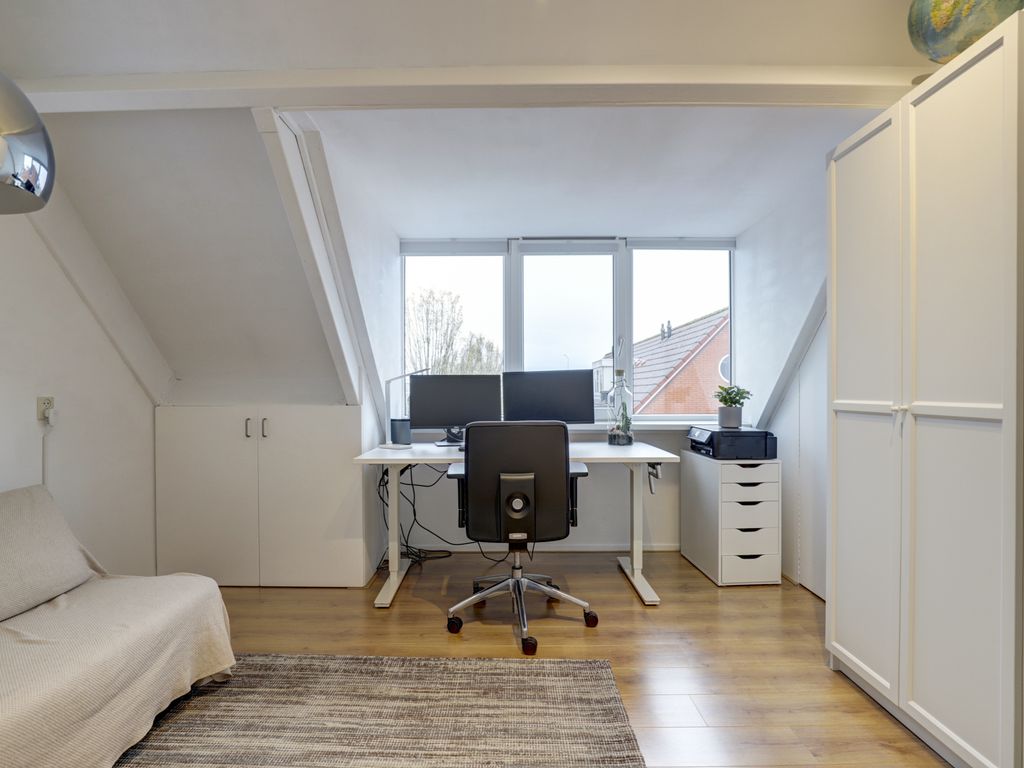 De tweede verdieping is bereikbaar via een vaste trap en beschikt over een ruime derde slaapkamer met dakkapel (circa 14m²). Dankzij de dakkapel is hier extra ruimte en licht gecreëerd, wat deze verdieping zeer geschikt maakt als volwaardige slaapkamer, werkruimte of hobbykamer.