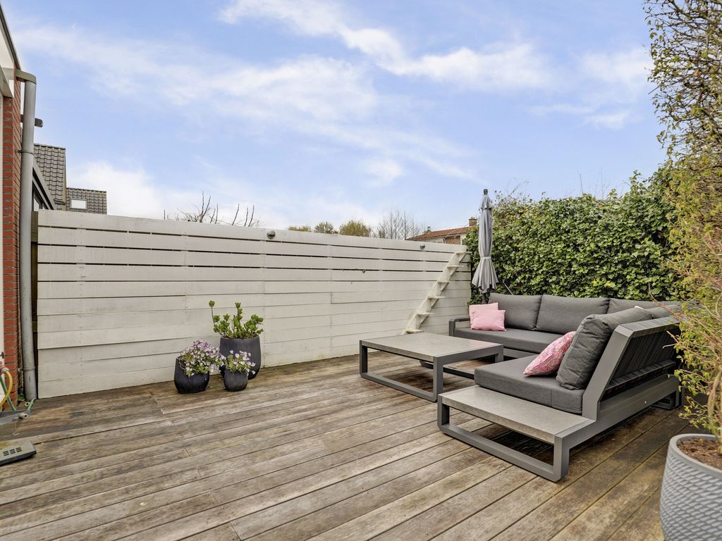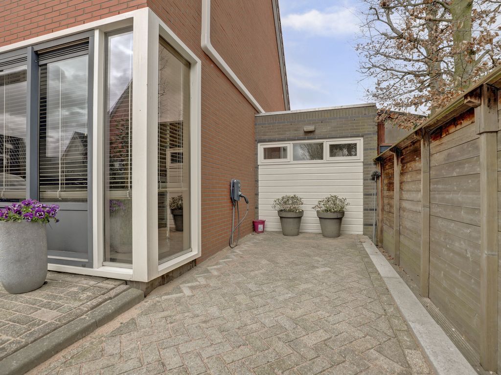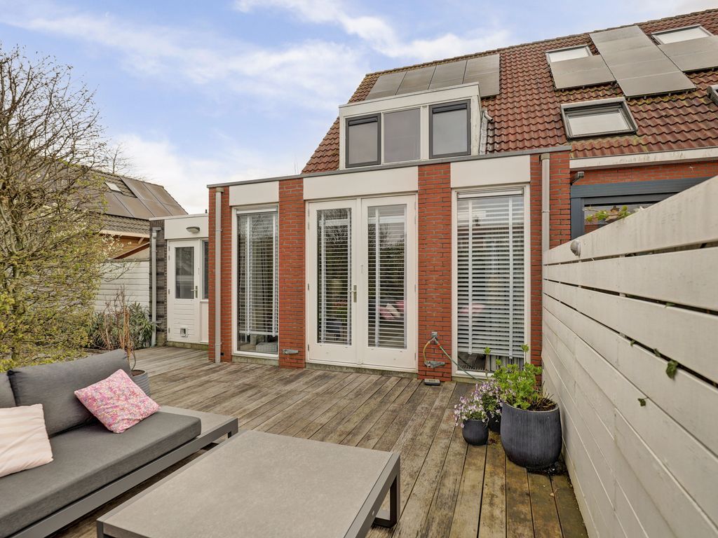 De achtertuin is verzorgd aangelegd en beschikt over een ruim hardhouten terras met buitenkraan; ideaal voor het plaatsen van een loungeset. De tuin is omsloten door schuttingen en groen, wat zorgt voor privacy. De tuin biedt ruimte voor meerdere zitplekken en is onderhoudsvriendelijk ingericht.