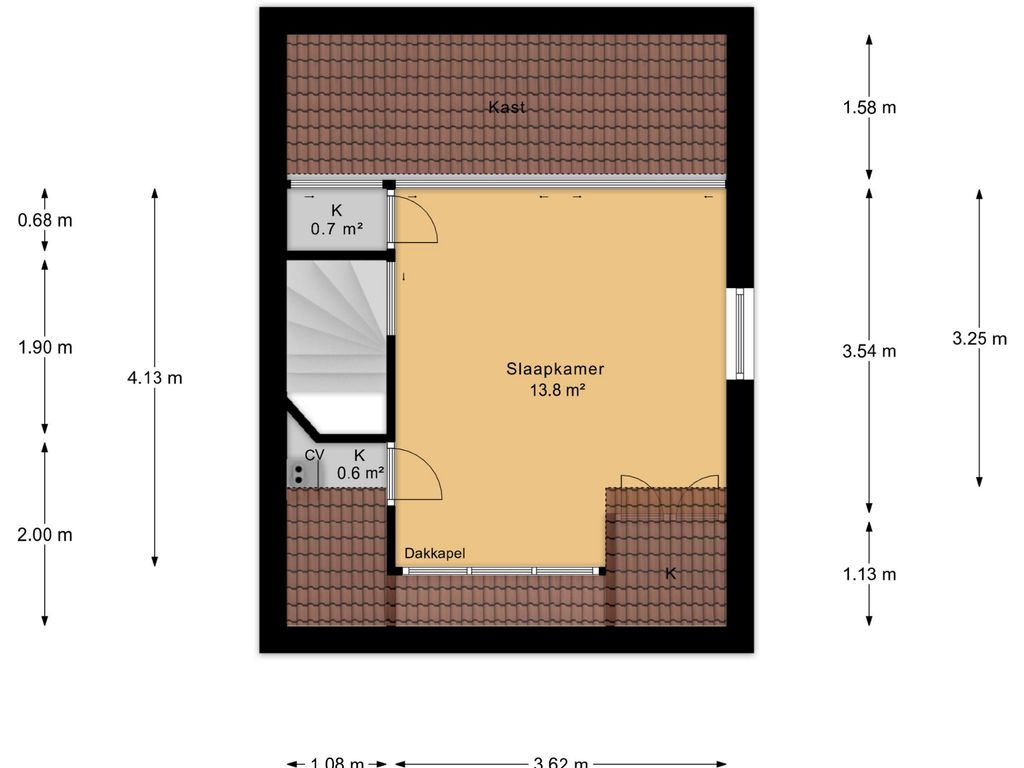 Slaapkamer (3) ca. 4.13x3.62m.