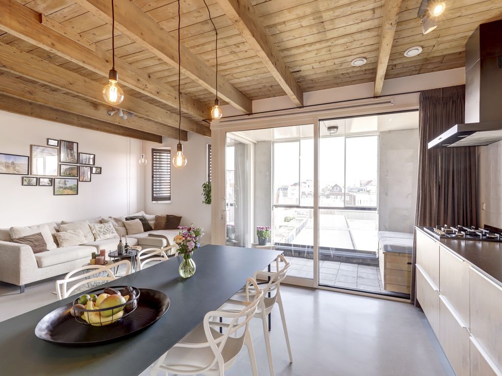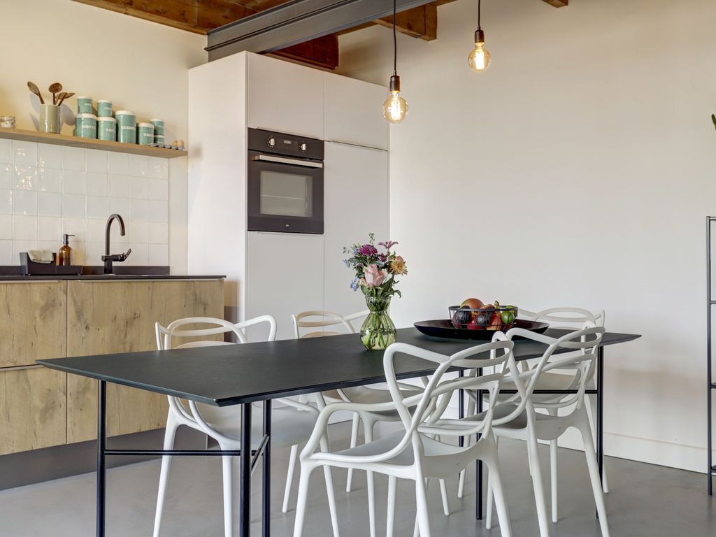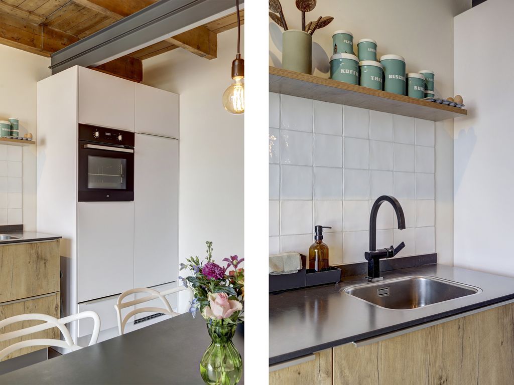 Het appartement combineert een moderne afwerking met karakteristieke details, zoals een prachtig houten balkenplafond. Hierdoor ontstaat een warme en eigentijdse woonomgeving.