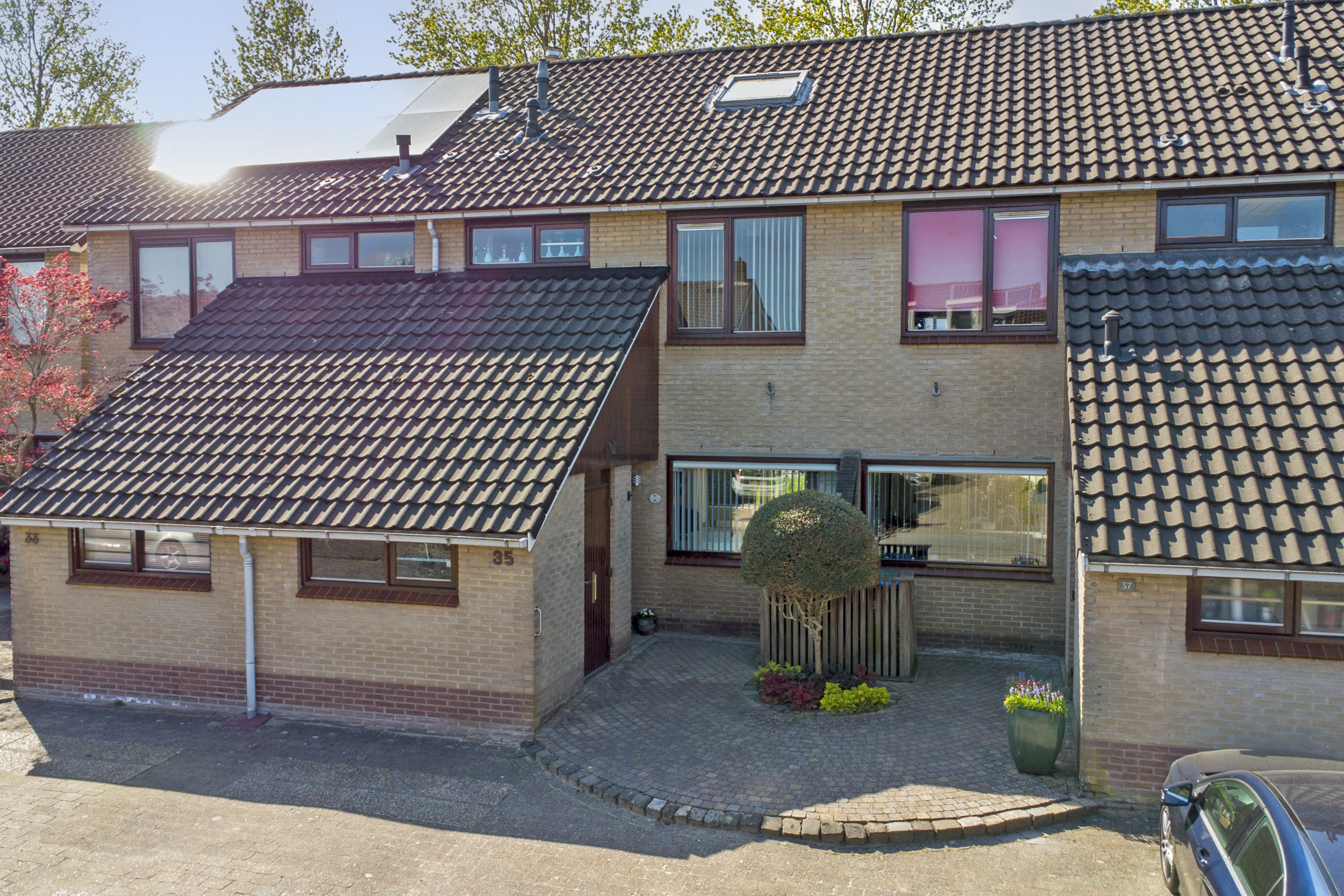 De achtertuin van ca. 44m² is gelegen op het westen, waardoor je hier heerlijk kunt genieten van de middag- en avondzon. De voortuin is geheel bestraat en biedt parkeergelegenheid voor 1 a 2 auto's. Een laadpunt voor een elektrische auto is eenvoudig te realiseren..