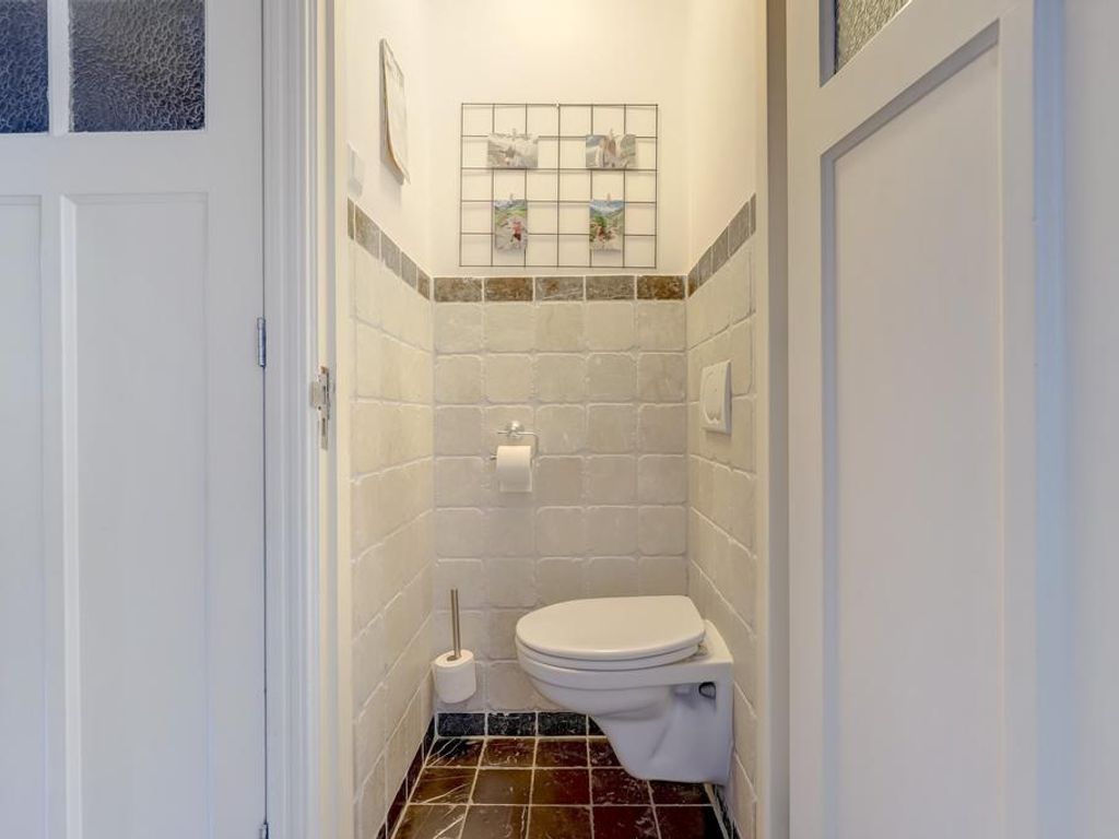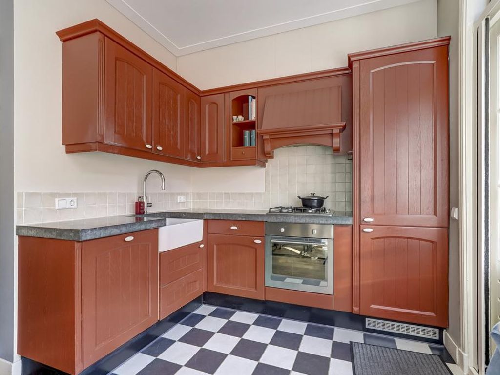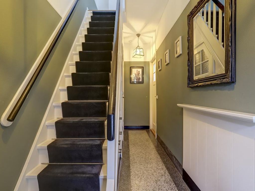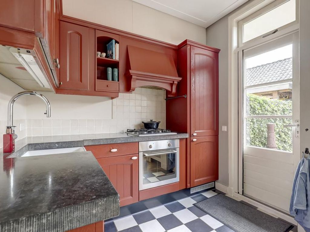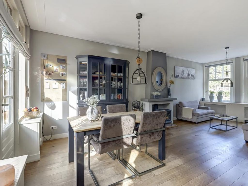 Via de entree betreed je de hal welke is voorzien van een originele Terrazo vloer, waar zich de trapopgang naar de eerste verdieping, de toiletruimte en toegang tot de woonkamer bevinden. De ruime, lichte woonkamer van ca. 25 m² heeft een sfeervolle houtkachel, een prachtige eikenhouten parketvloer en openslaande deuren naar de zonnige achtertuin. De open keuken is uitgerust met moderne inbouwapparatuur, waaronder een Quooker (2023), vaatwasser (2022) en een werkblad van Belgisch hardsteen. Het originele glas-in-lood raam, geïntegreerd in dubbel glas, geeft de ruimte een authentieke uitstraling. Daarnaast is de achterzijde van de begane grond voorzien van elektrisch bedienbare markies.