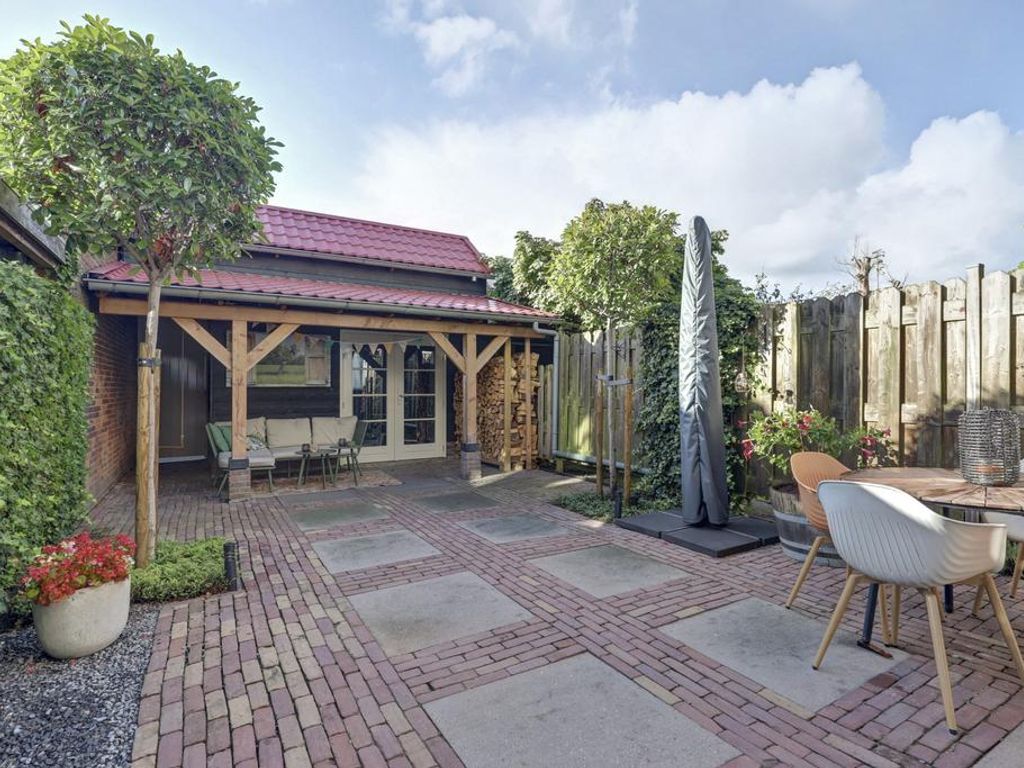 De zonnige achtertuin, gelegen op het zuidwesten, is bereikbaar via de openslaande deuren vanuit de woonkamer. De tuin is voorzien van een veranda en een ruime berging, ideaal voor het opbergen van tuinmeubilair en gereedschap. Door de ligging van de tuin kun je in het vroege voorjaar al heerlijk genieten van de zon. Ook de veranda is een heerlijke plek om te zitten