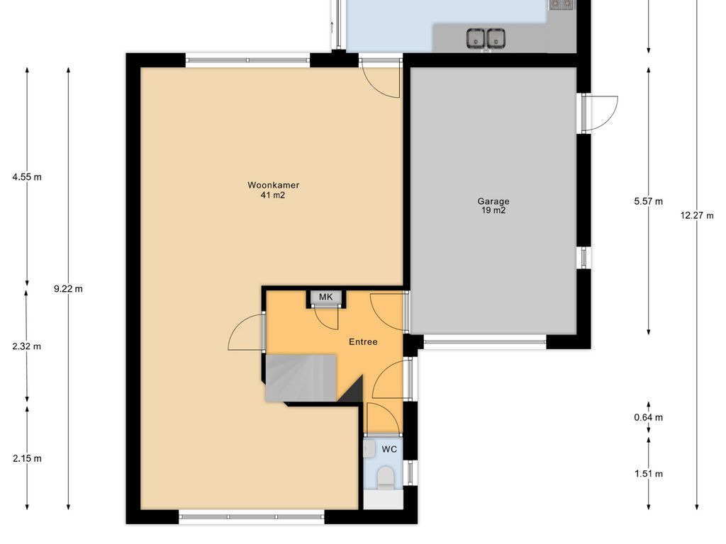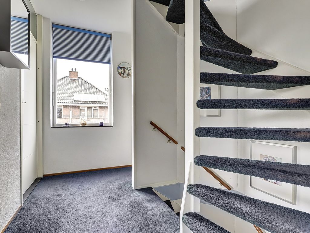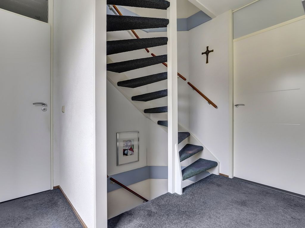naar de eerste verdieping. Vanuit de hal is er tevens toegang tot de woonkamer en de garage.