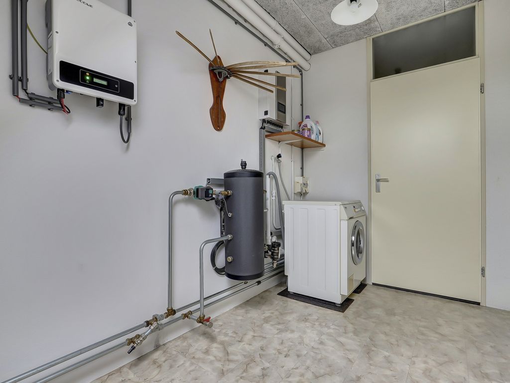 waardoor dit een fijne, lichte kamer is. De tweede kamer aan de achterzijde is voorzien van een aansluiting voor de wasmachine en de apparatuur voor de warmtepomp en zonnepanelen. Aan de voorzijde bevindt zich een derde slaapkamer zeer geschikt als logeerkamer, hobbykamer of werkplek waar zich de vlizotrap naar de bergzolder bevindt. Deze ruimte kan worden gebruikt als opslagplaats voor bijvoorbeeld seizoensspullen.